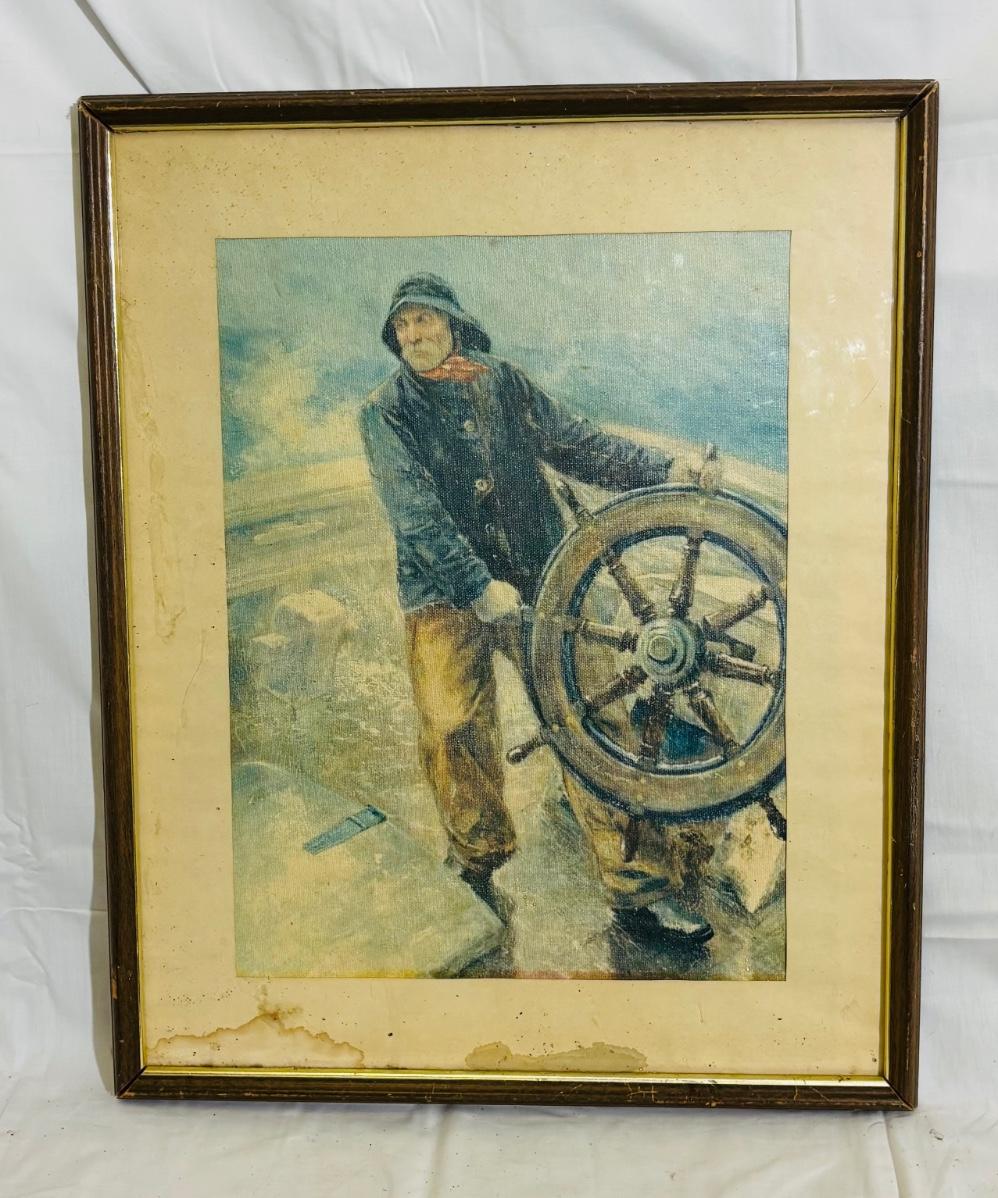 J-24-8 Maritime Framed Print, Sailor, Man at the Wheel - also known as "Fisherman at the Wheel"
