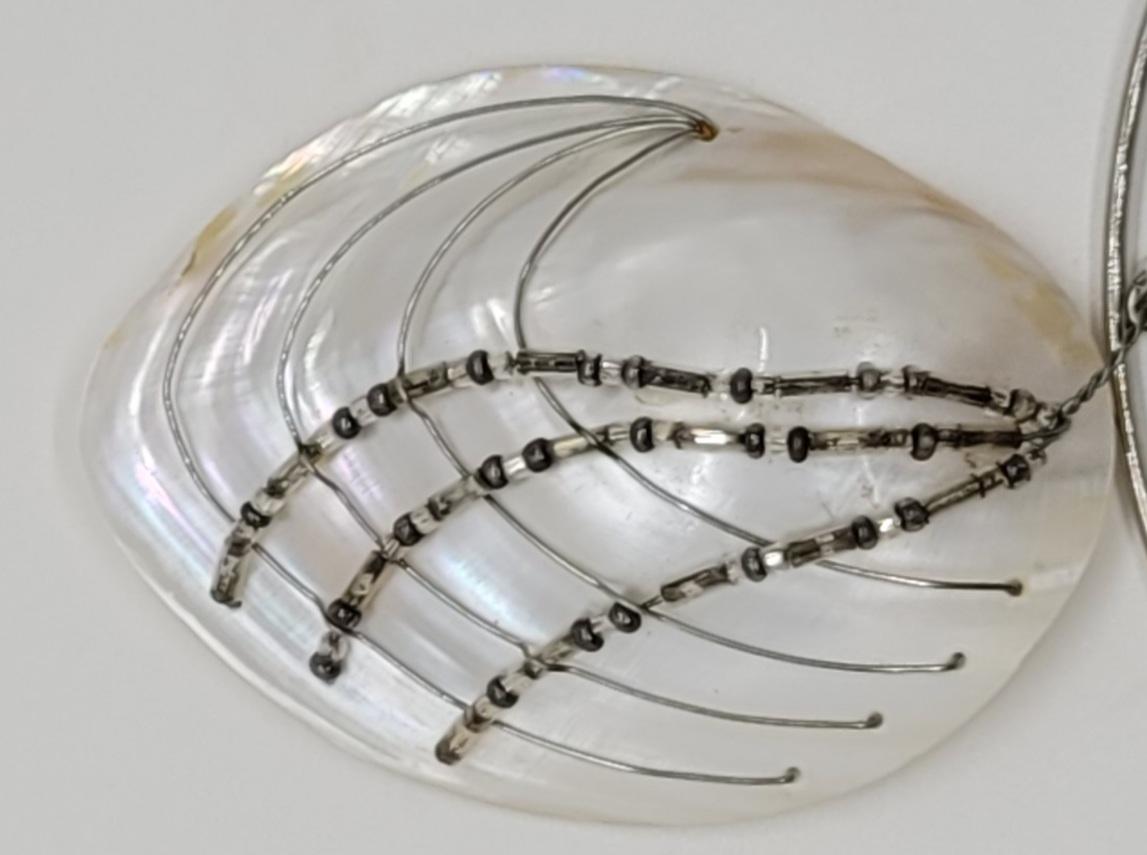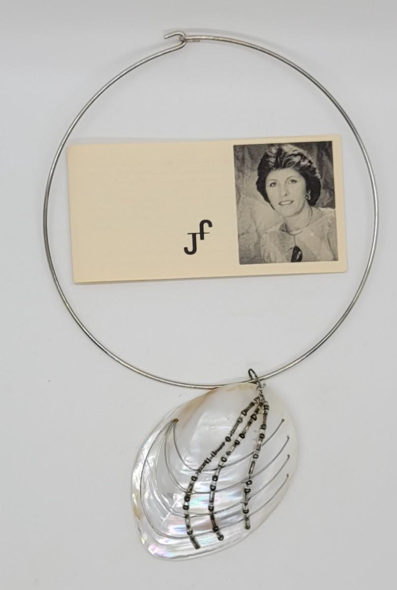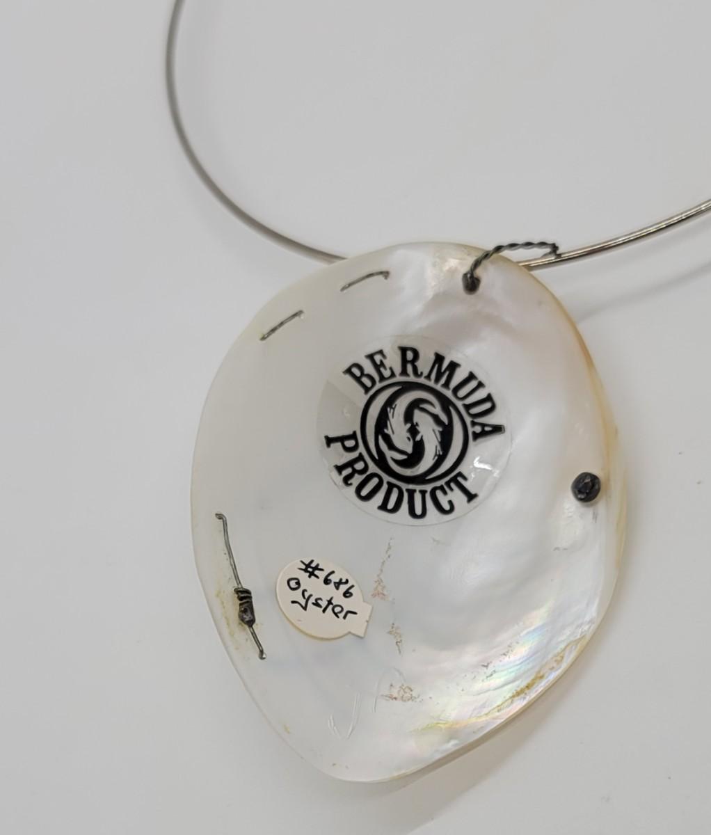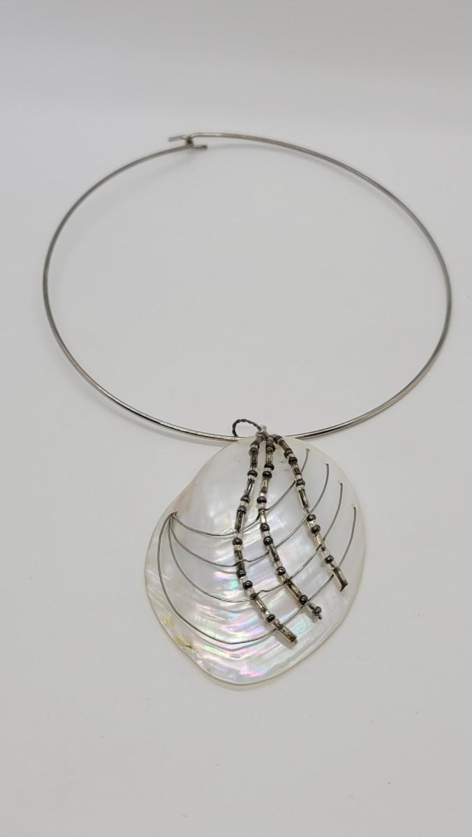 Lot J26: hand crafted oyster shell pendant on a silvertone choker