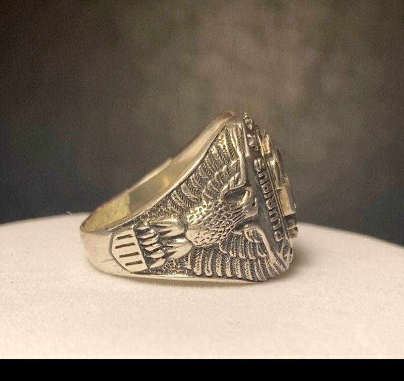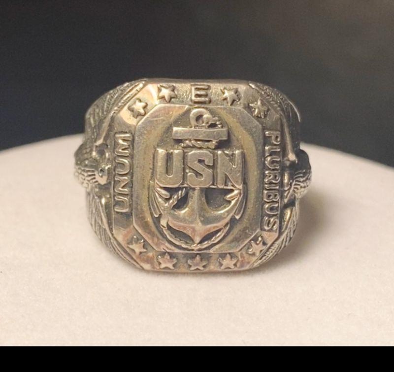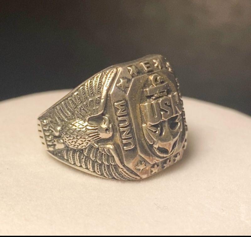 Vintage, sterling ring with U.S. Navy anchor and eagles on sides. Size 9.