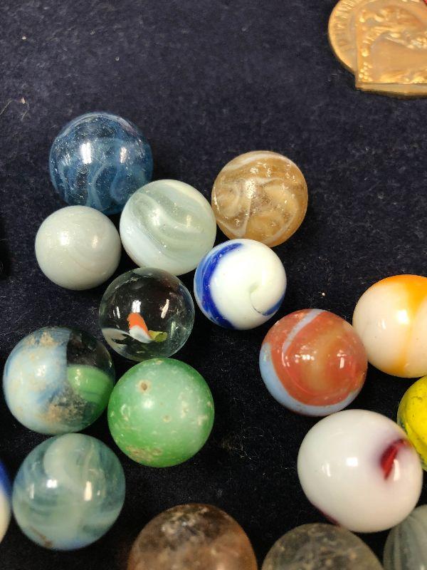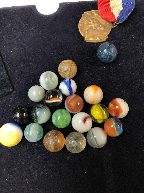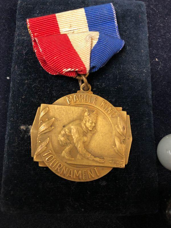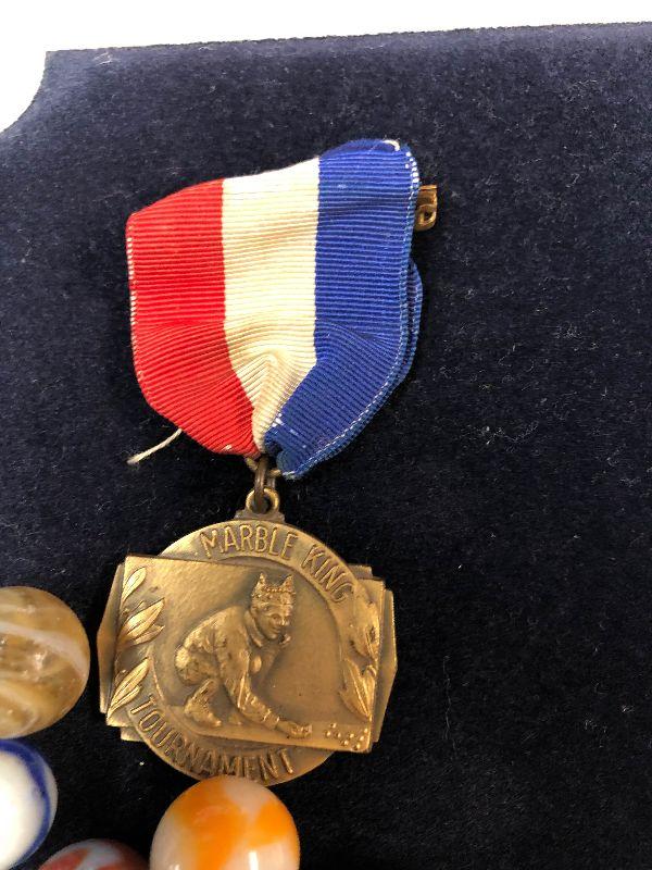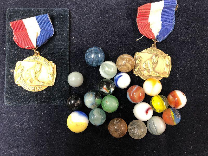 J29: Pair of 1940 Marble King Tournament Awards & Vintage Marbles