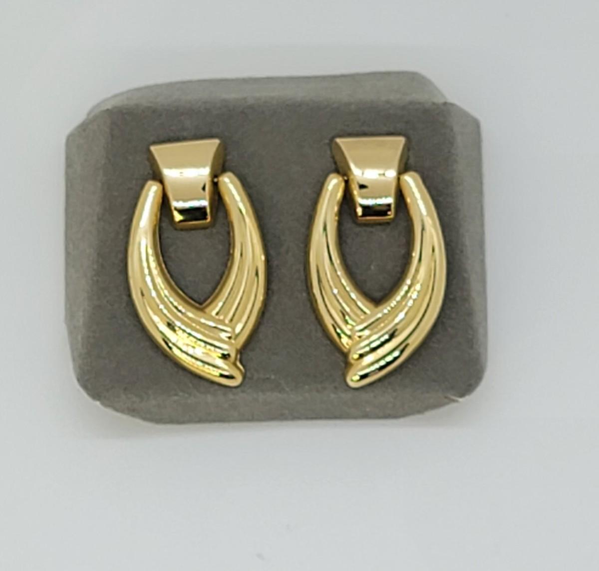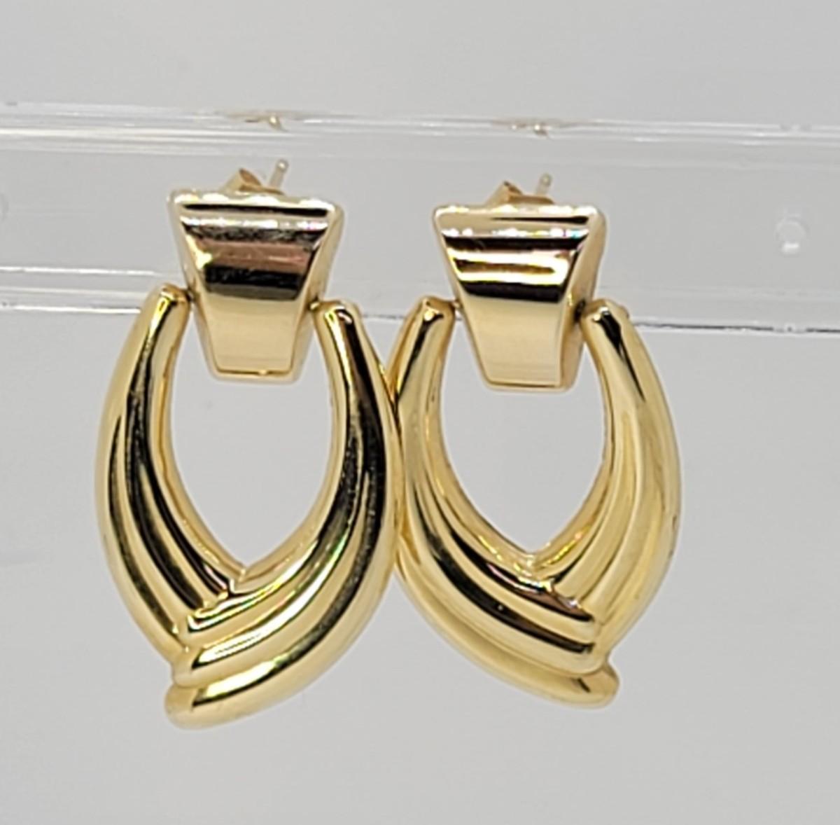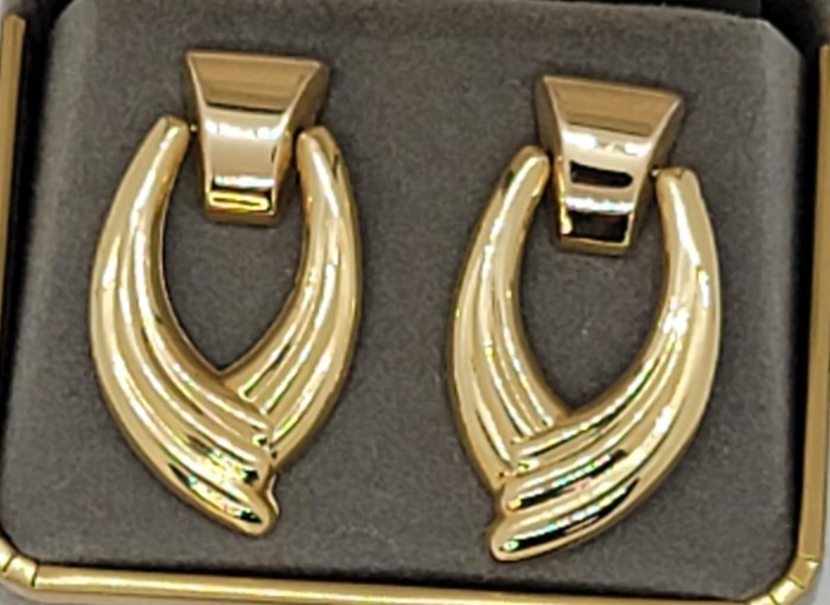 J3: New In Box (2.2g) 14k Yellow Gold Pierced "Doorknocker" Earrings