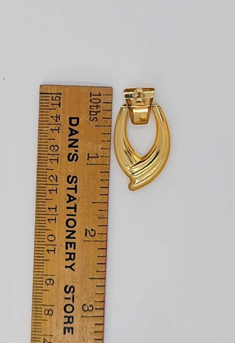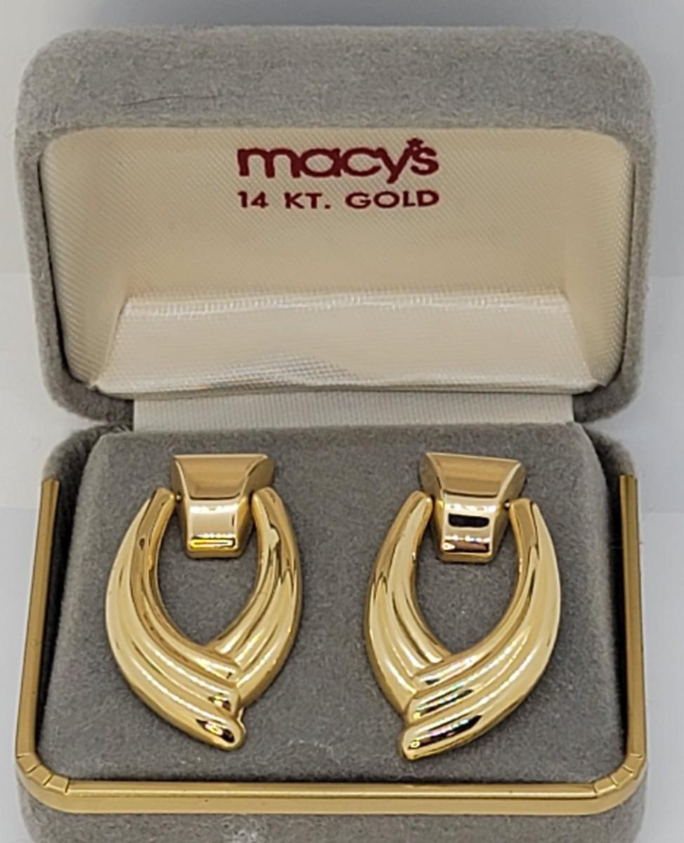 Lovely pair of new earrings from Macy's. 2.2g 14k yellow gold pierced "doorknocker" earrings. Please see all pictures as they are the best representation of the items. The pictures show condition, measurements if taken, and what is included in the lot. Due to the large amount that we photograph and the time frame, we are not always able to take measurements. All items unless noted, are pre-owned and have been used. If you purchased furniture, you must bring help. We do not allow one person to carry large furniture out on their own. Bring help, tools and a truck for the safety of our client’s homes, and your personal safety. Any damages that result to the property including walls, and floors due to moving of the furniture will be charged to the buyer. Company policy. Thank you.