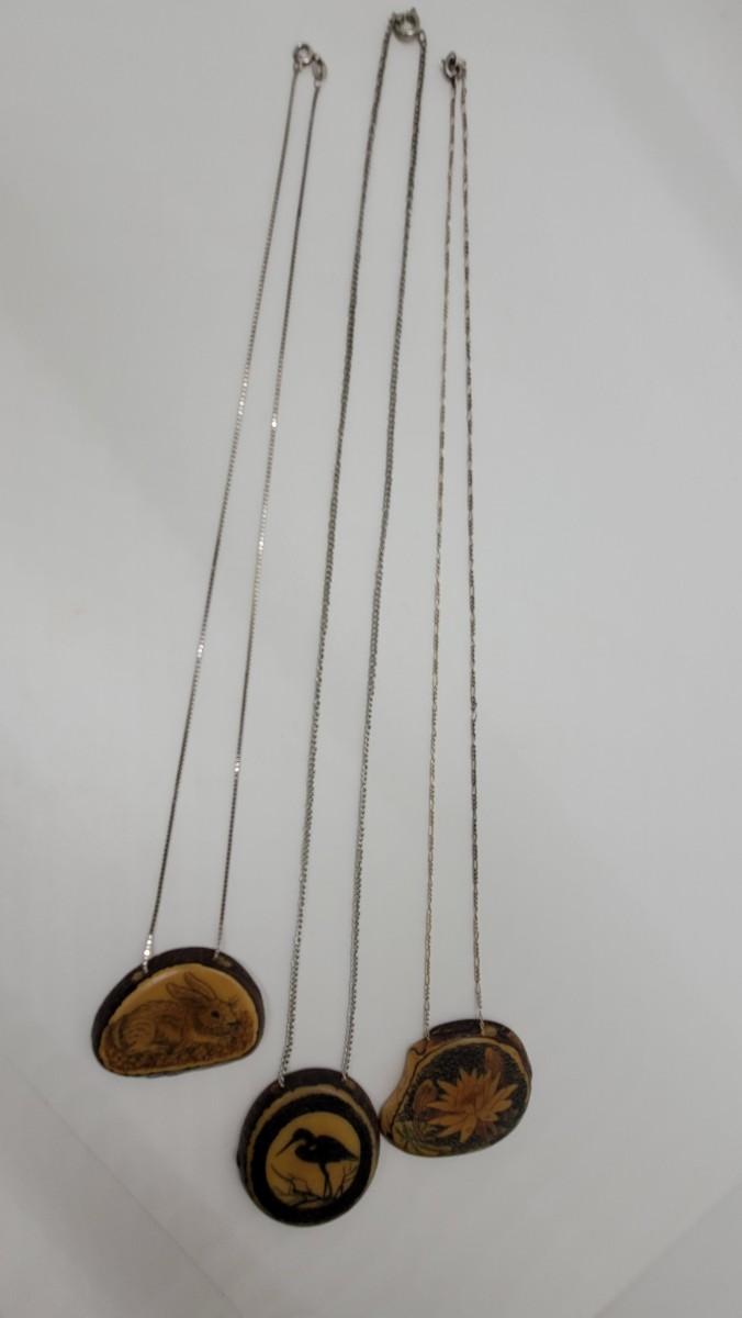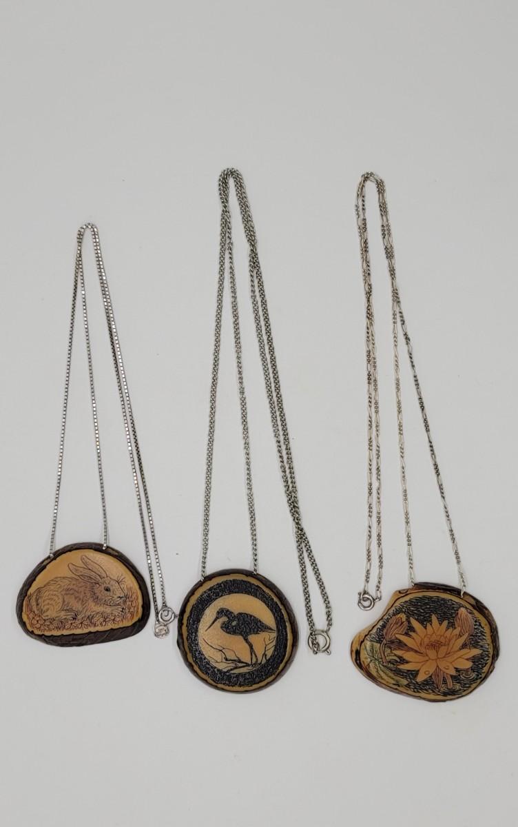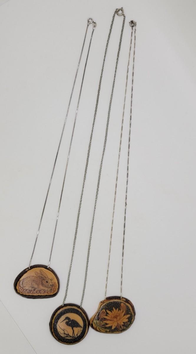 Lot J31: 3 handcrafted pendants on sterling chains
