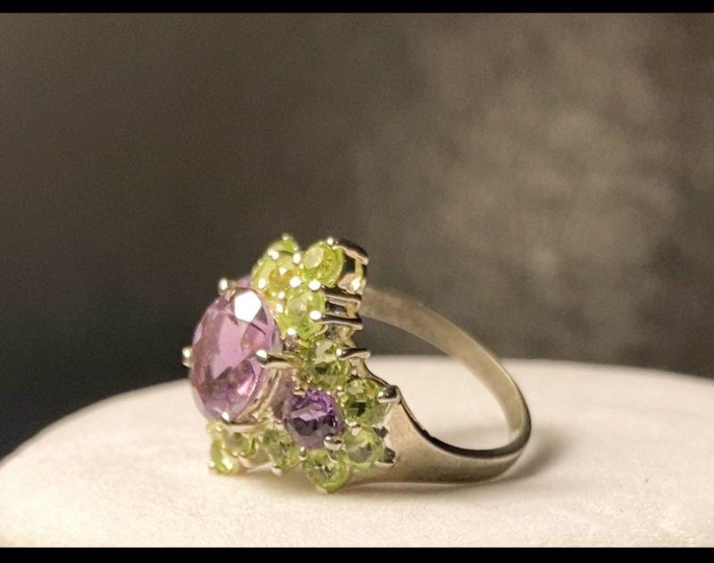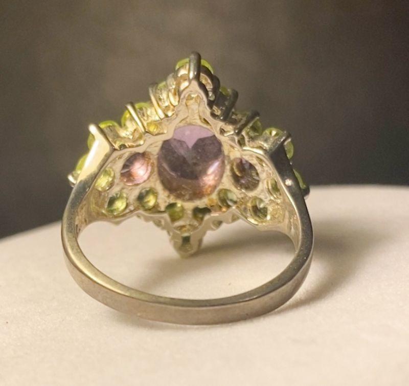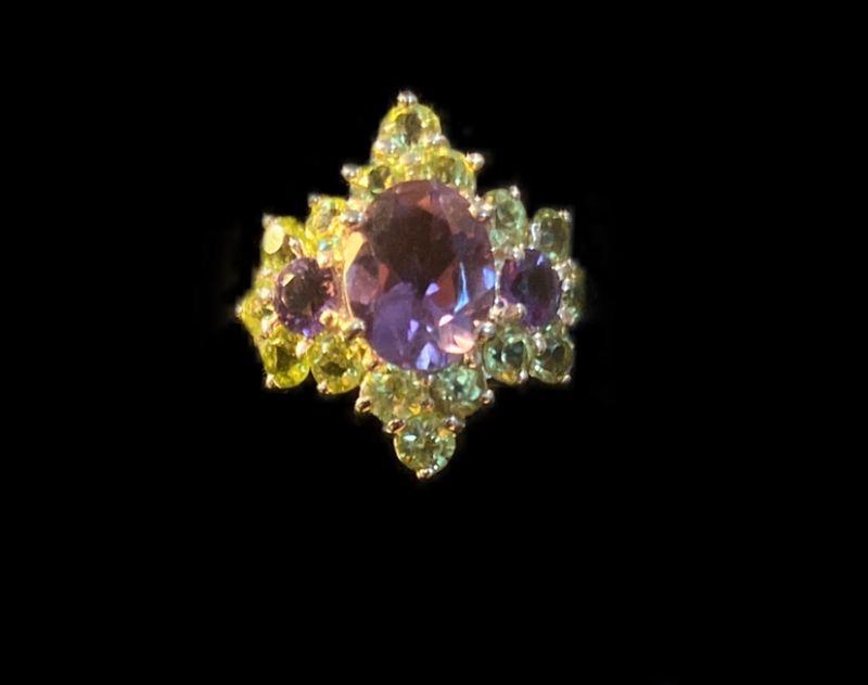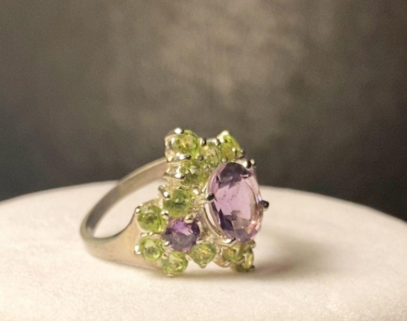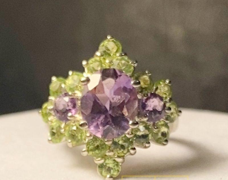J33: Beautiful Amethyst and Peridot Sterling silver ring