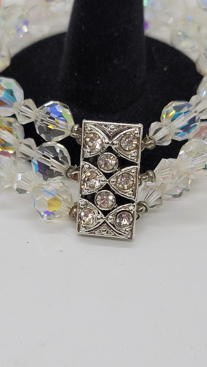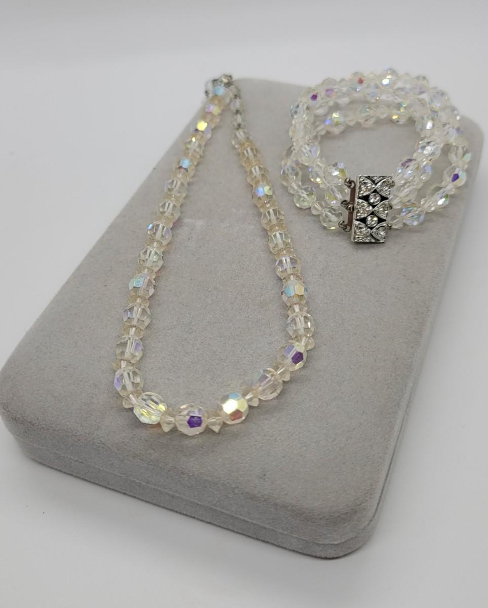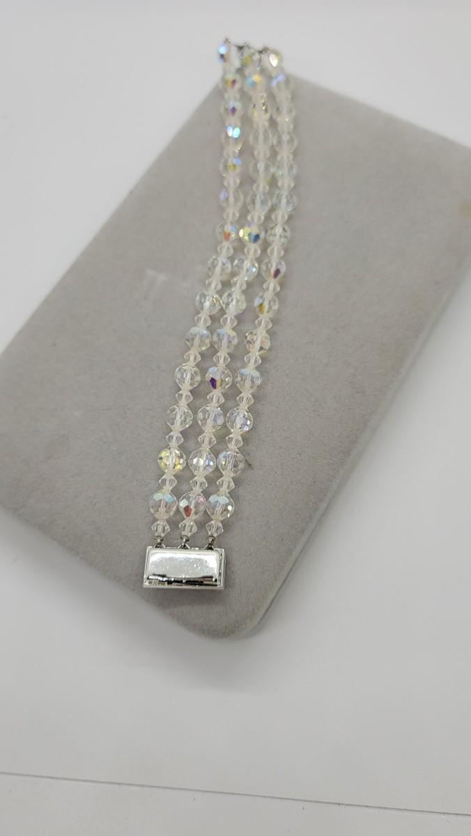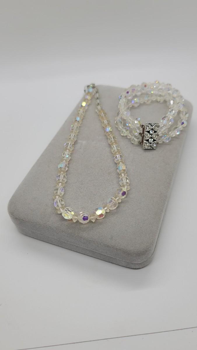 Aurora Borealis Austrian Crystal single strand necklace and a triple strand bracelet. See all pictures for content of the lot, condition of the lot, and measurements if taken. Pictures are the best representation of the items listed and items are untested unless indicated in description. Thank you for looking and have fun bidding!