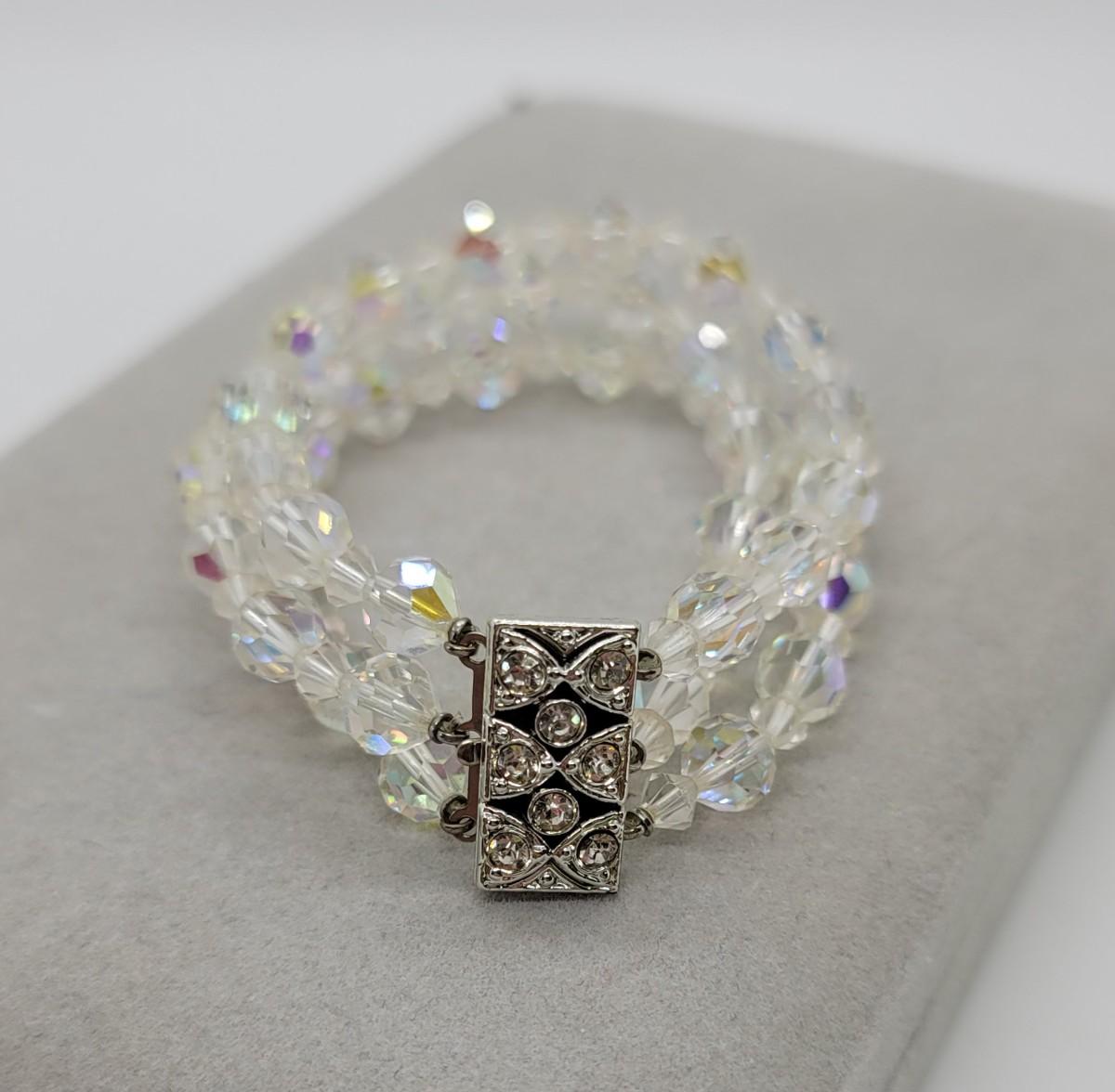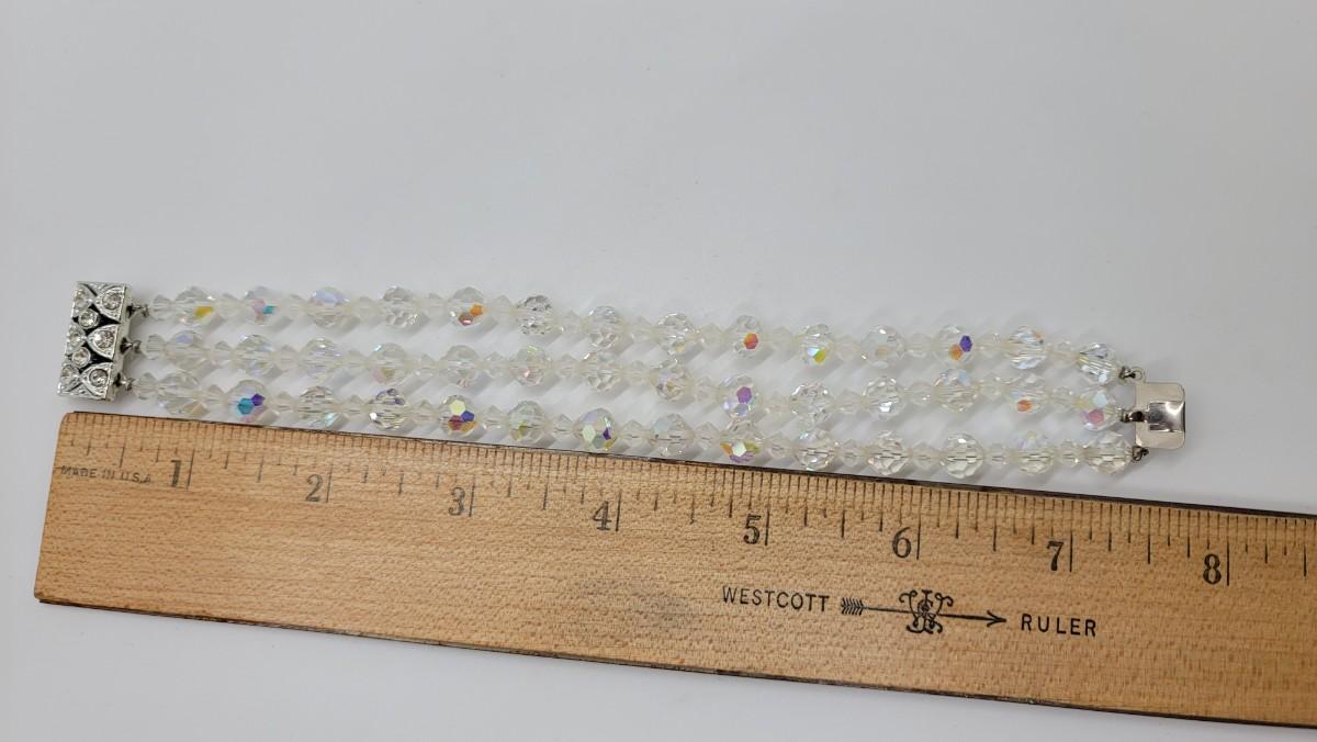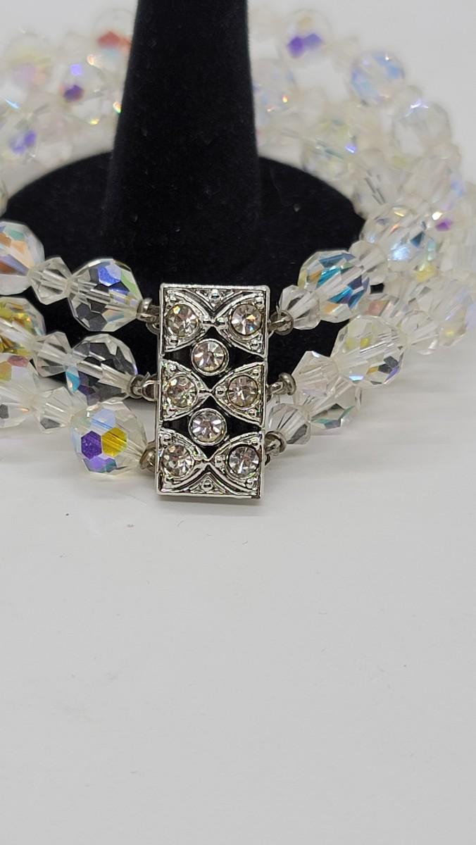 Aurora Borealis Austrian Crystal single strand necklace and a triple strand bracelet. See all pictures for content of the lot, condition of the lot, and measurements if taken. Pictures are the best representation of the items listed and items are untested unless indicated in description. Thank you for looking and have fun bidding!