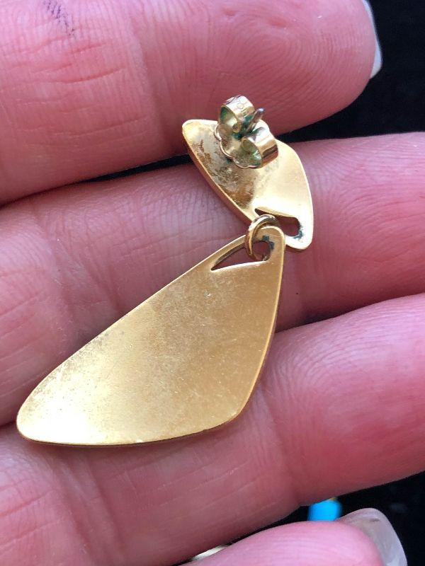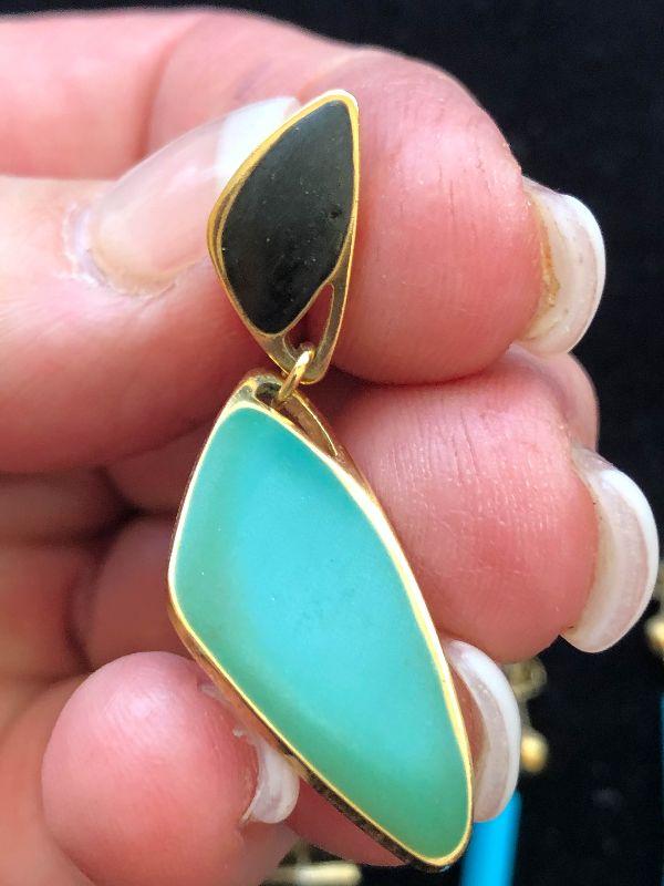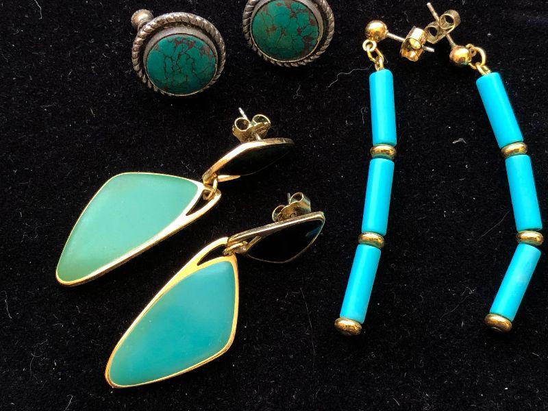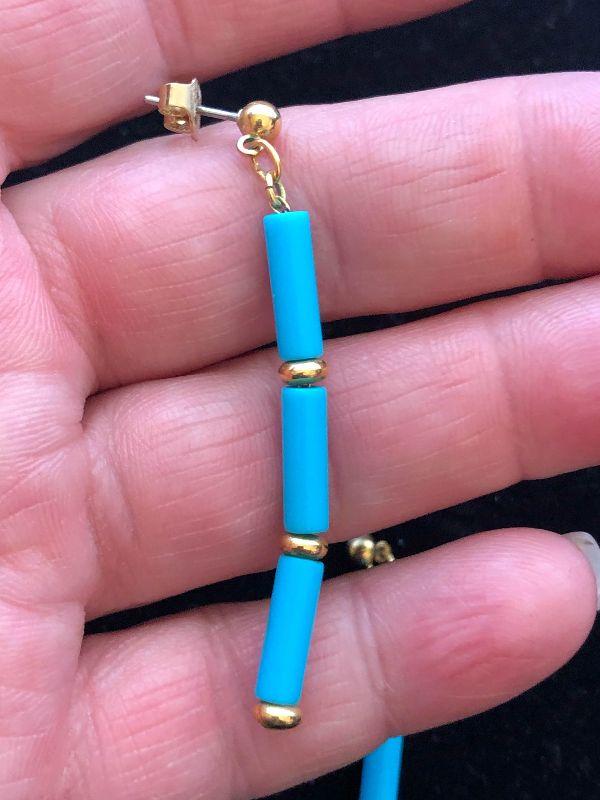 Gold toned earrings with turquoise stones.