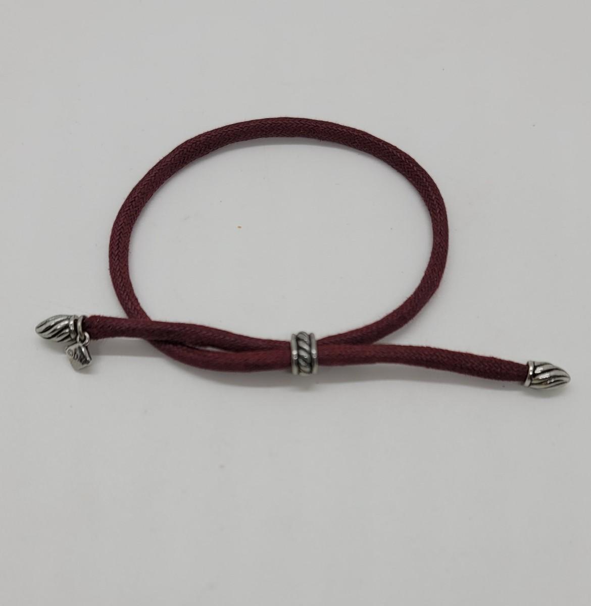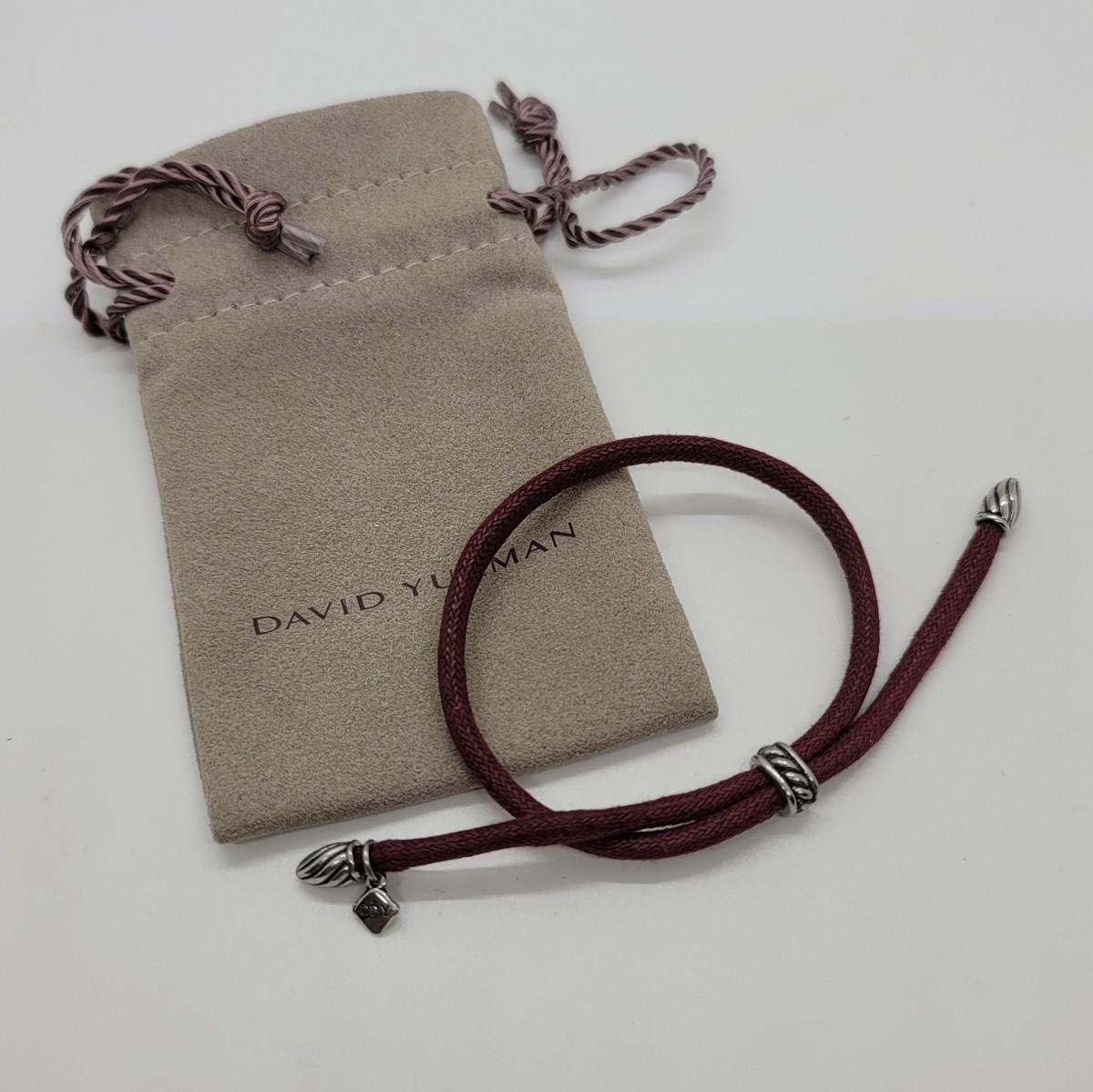 David Yurman adjustable bracelet on Maroon cord. Silver clasp and end tips. DY pouch included.