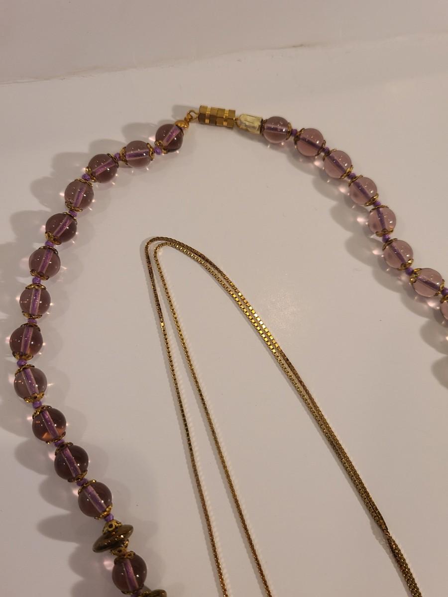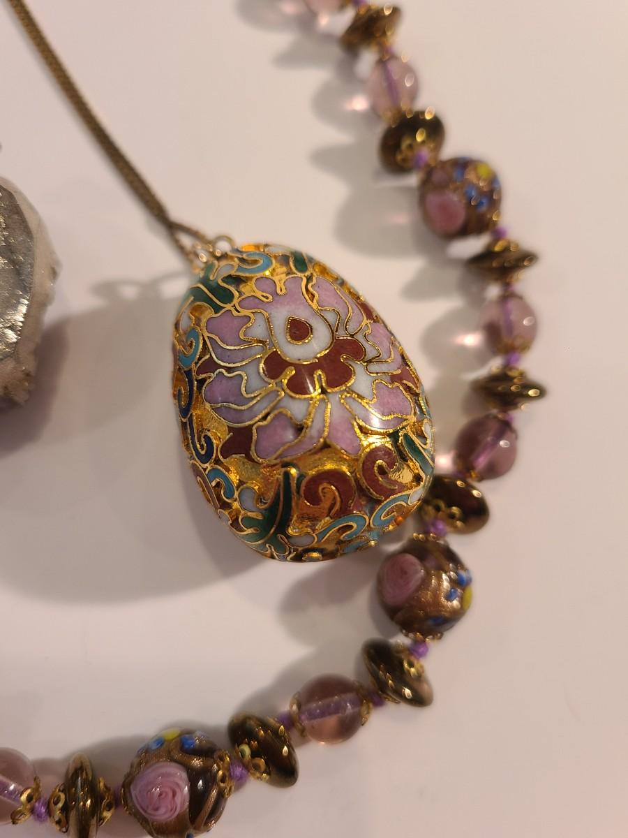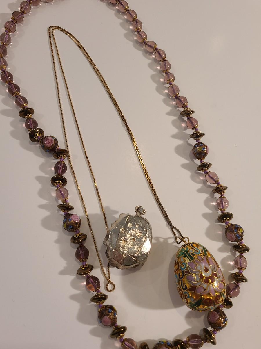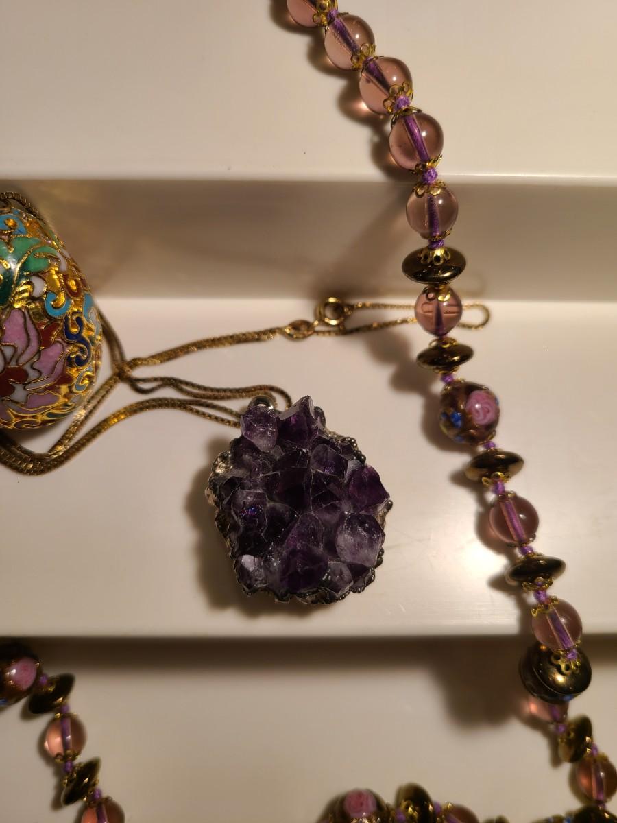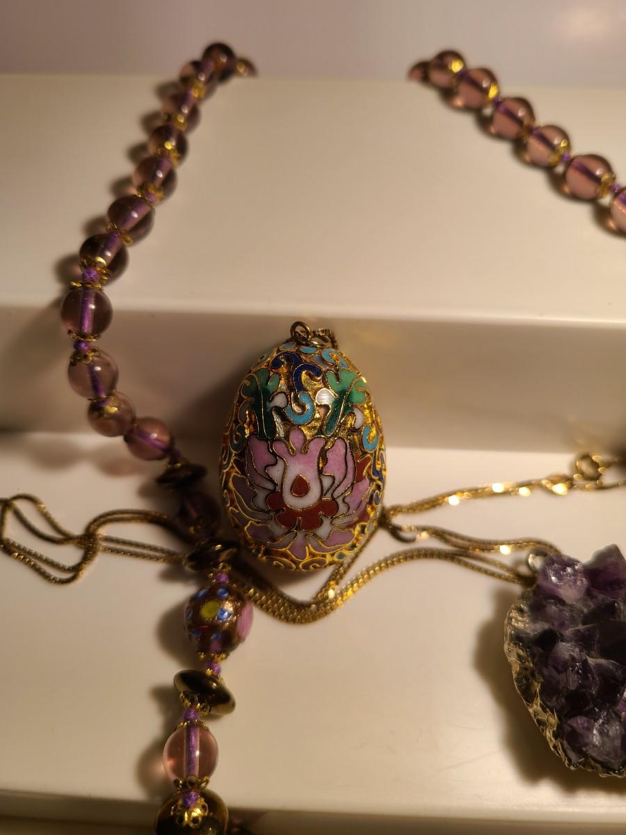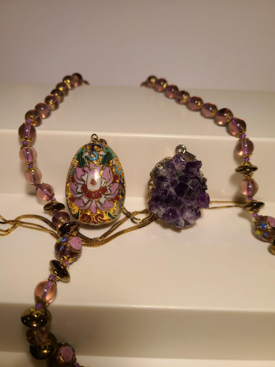 J4: Vintage Amethyst Geo Pendant, Glass Painted Bead Necklace and More