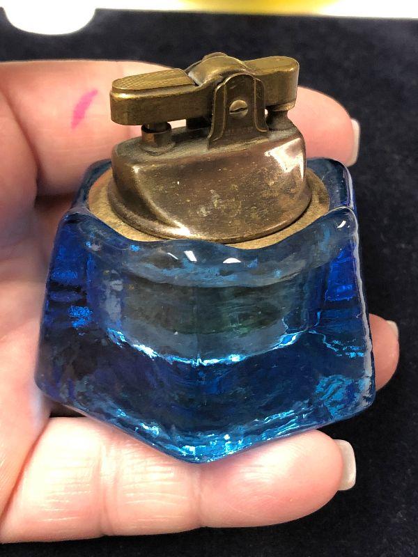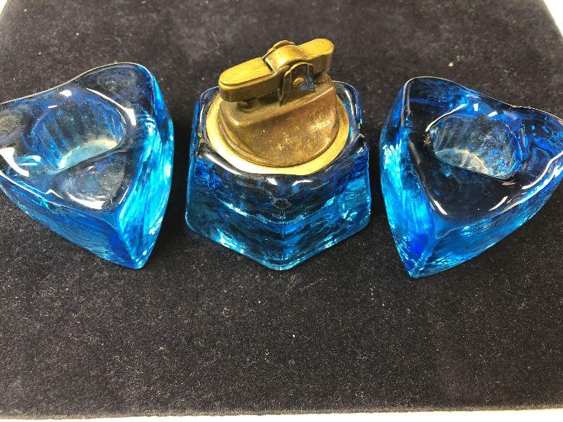 J40: Vintage Nuline Glass Lighter and Candlesticks