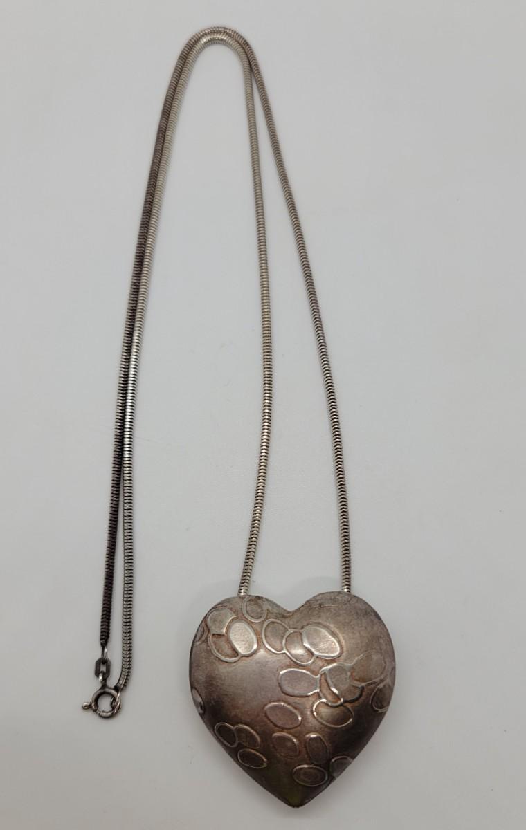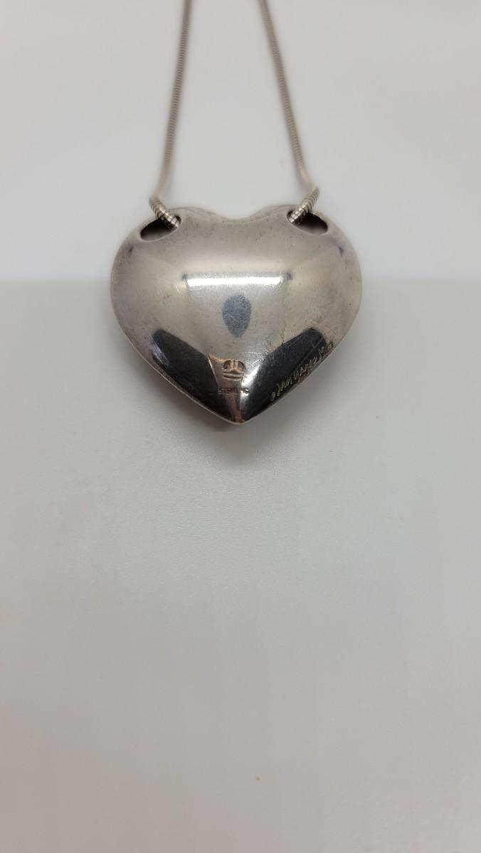 Puff Heart necklace in sterling silver created by artist Jan Yager, 1987