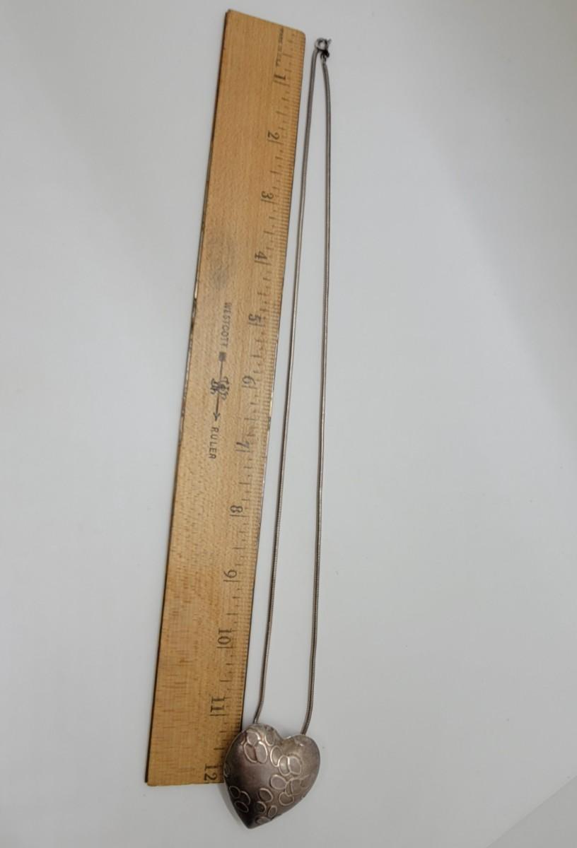 Lot J40 - Puff Heart 24” Necklace in Sterling Silver, By artist Jan Yager.