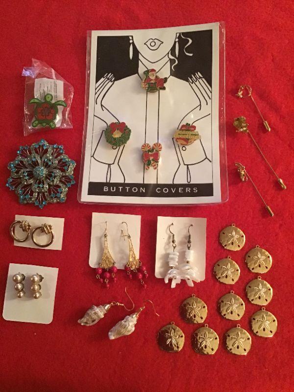 J#416 - Earrings (pierced), Sand Dollar pendants, etc.