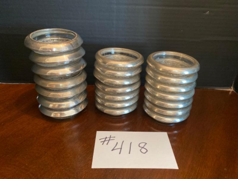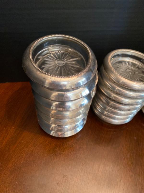 Lot of Sterling and glass coasters one pattern has 14 the other pattern has 7