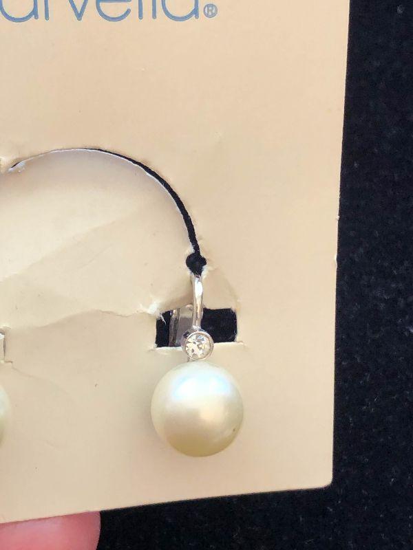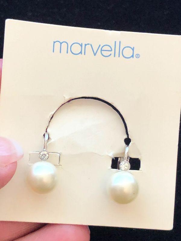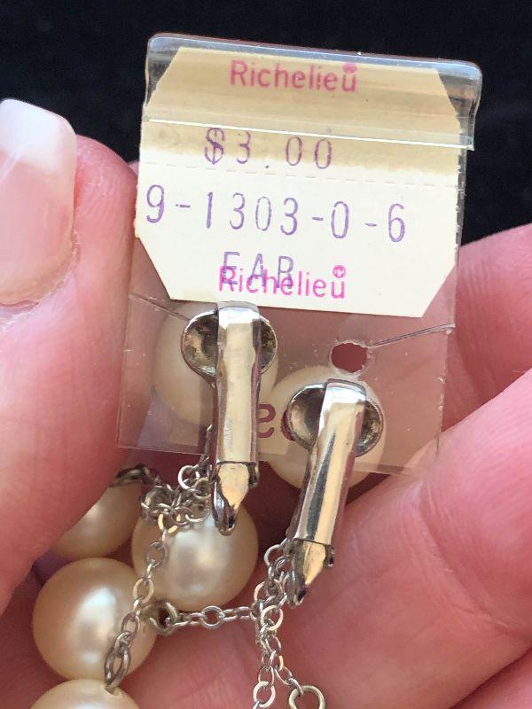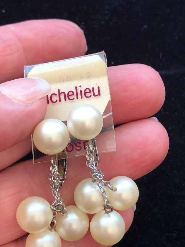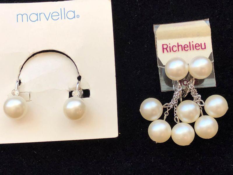 Two pairs of new pearl earrings, Marvella is a pair of pearl clip ons, and Richelieu is multi pearl dangle earrings.