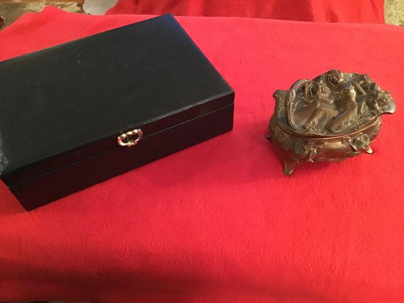 Antique WB Mfg. Jewelry/trinket box #347 and blue jewlery box