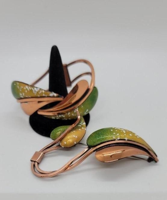 Lot J44 - Matisse Renoir, Copper Enameled, Classic Pin & Bracelet Set