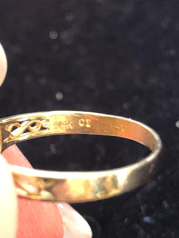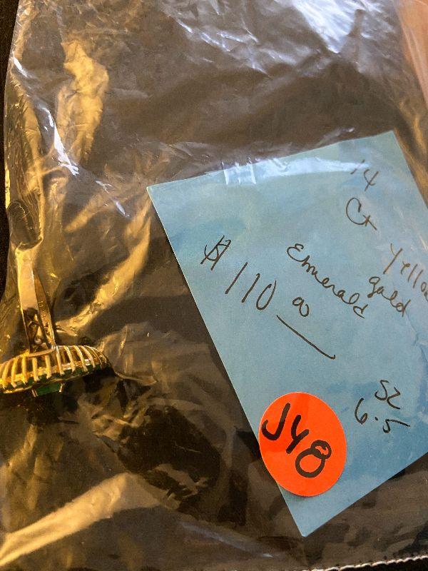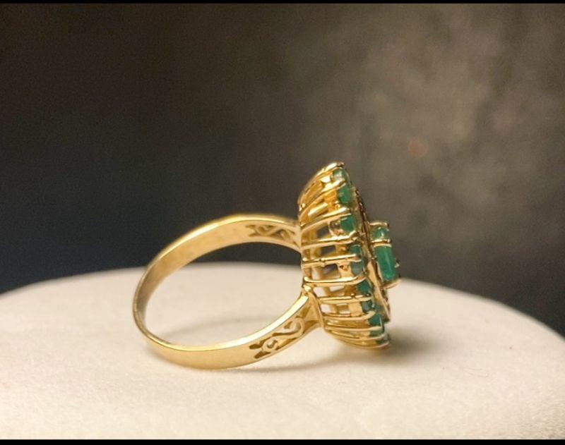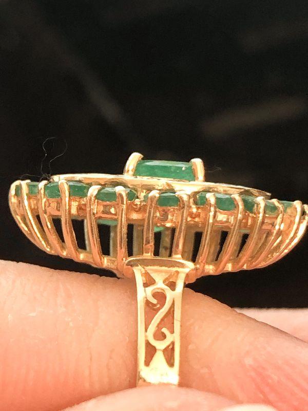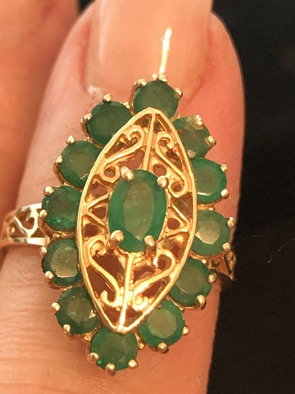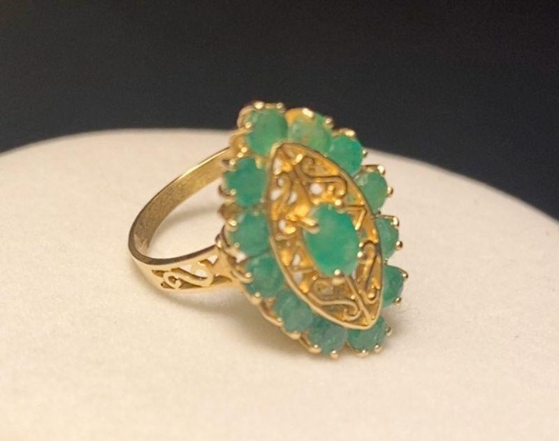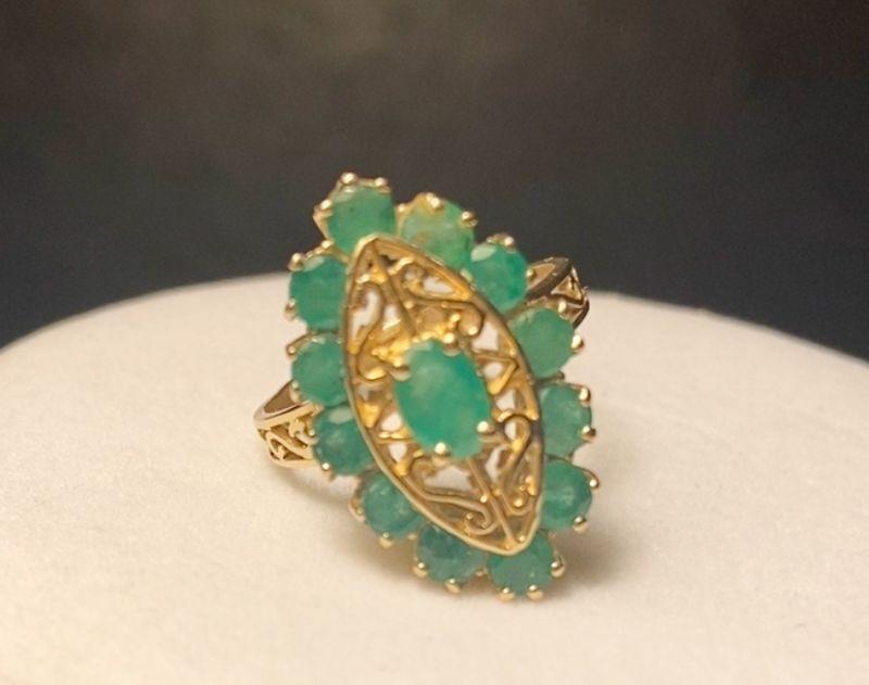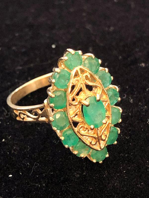 14K yellow gold filigree ring with emeralds. Size 6.5.