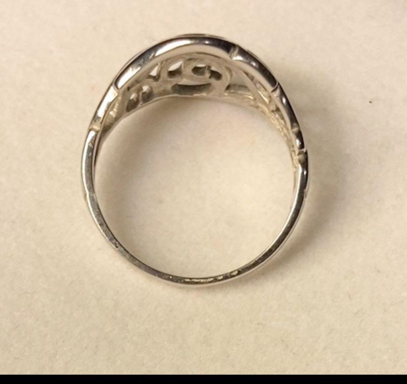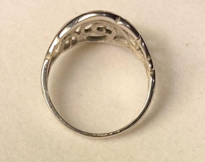 Filigree, 10K white gold ring, size 6.5.