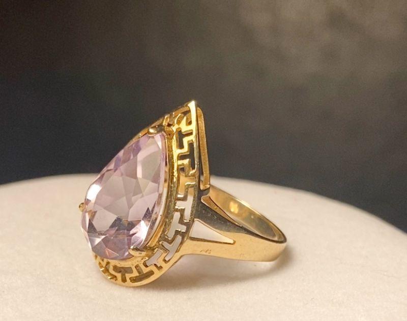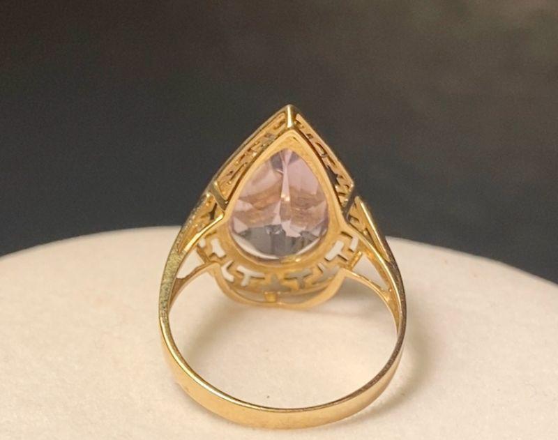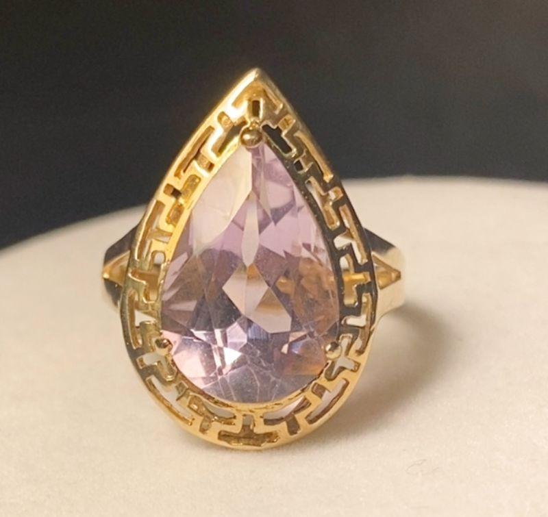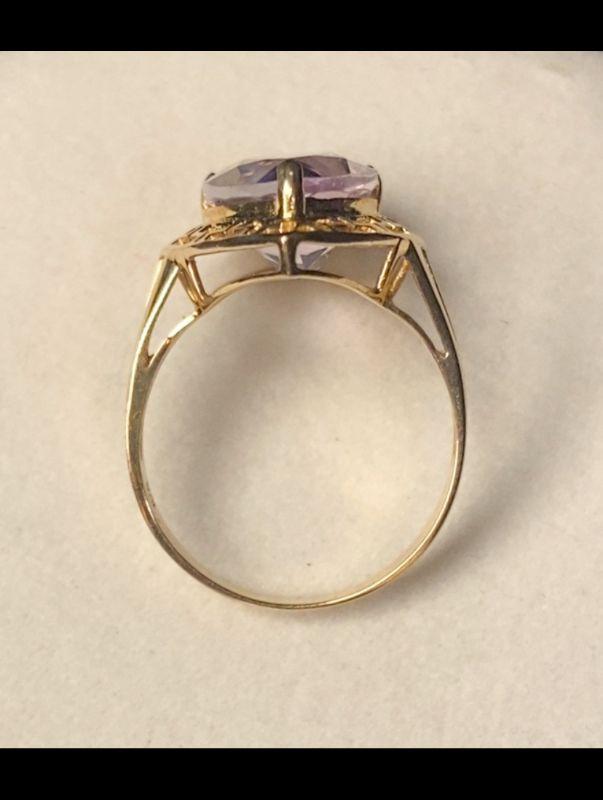 10K yellow gold ring with pear shaped amethyst. Size 7.