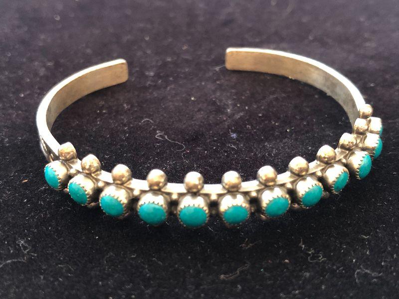 Sterling silver bracelet with turquoise beads.