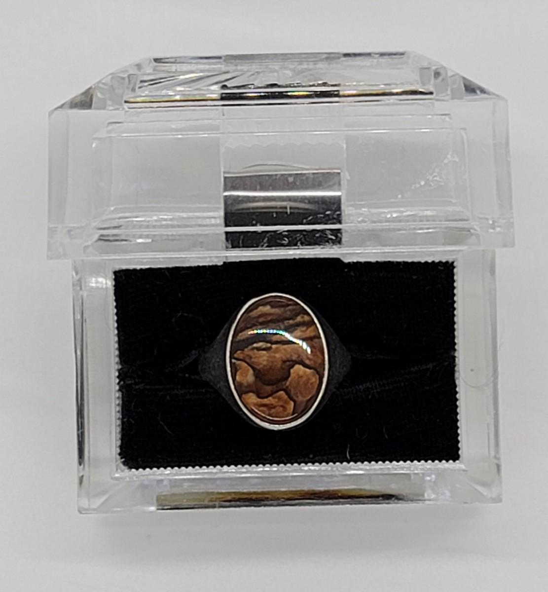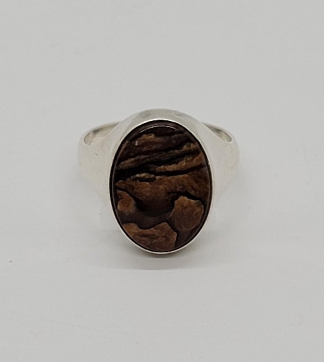 Signed J. Roller Chocolate Jasper sterling silver ring, size 9 3/4”.