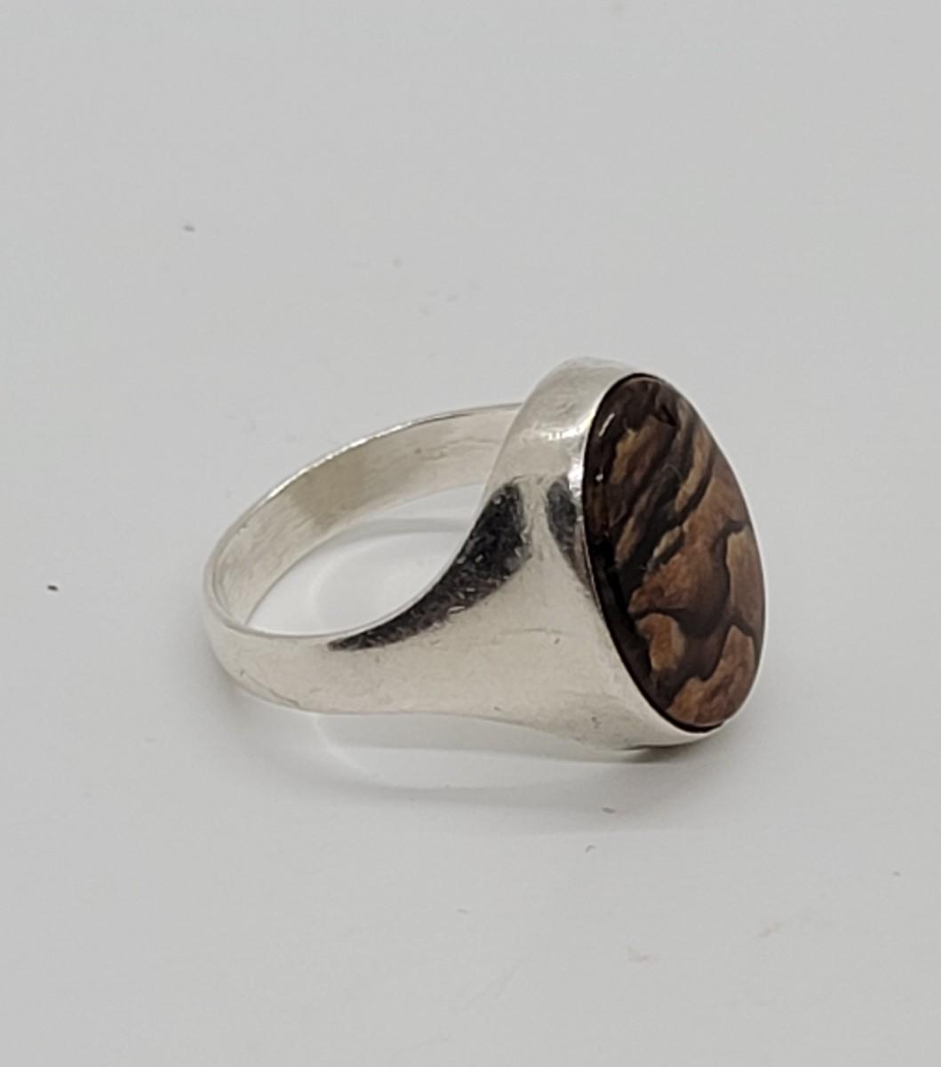 Lot J66 - Chocolate Jasper Sterling Silver Ring SIGNED J. ROSLER