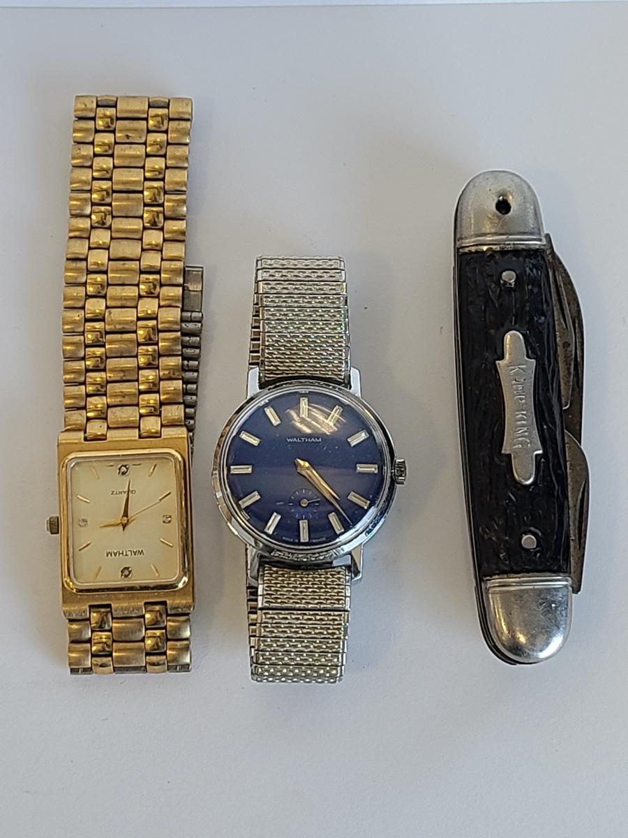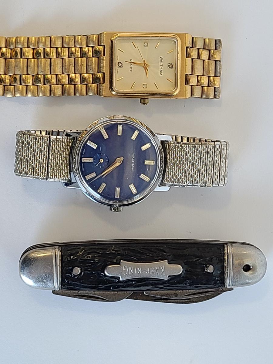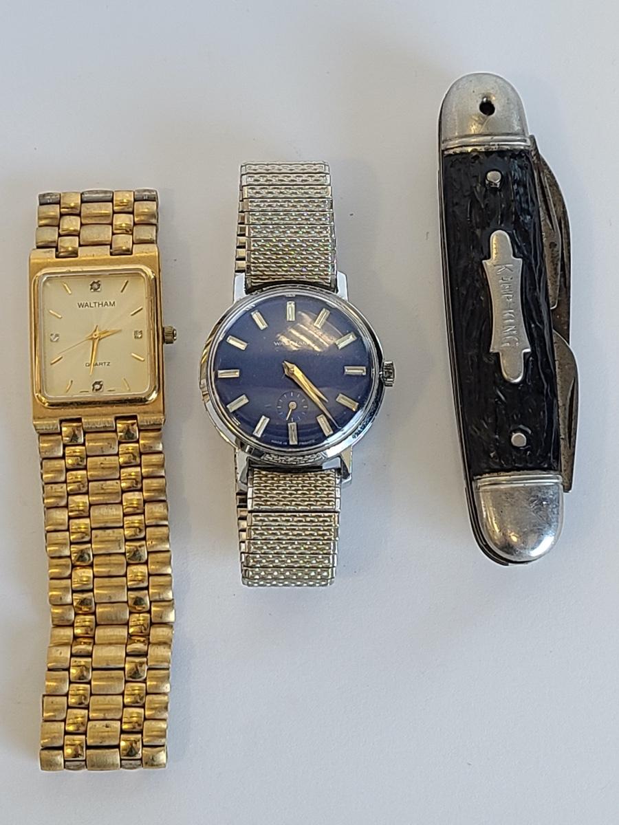 Vintage watches, untested, and a Kamp-King Pocket Knife. Please see all pictures as they are the best representation of the items. The pictures show condition, measurements if taken, and what is included in the lot. Due to the large amount that we photograph and the time frame, we are not always able to take measurements. All items unless noted, are pre-owned and have been used. If you purchased furniture, you must bring help. We do not allow one person to carry large furniture out on their own. Bring help, tools and a truck for the safety of our client’s homes, and your personal safety. Bring packing supplies such as boxes and packing. Company policy. Thank you.