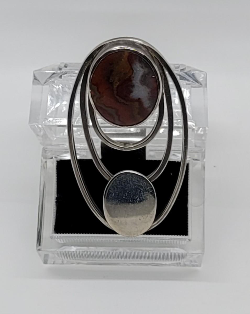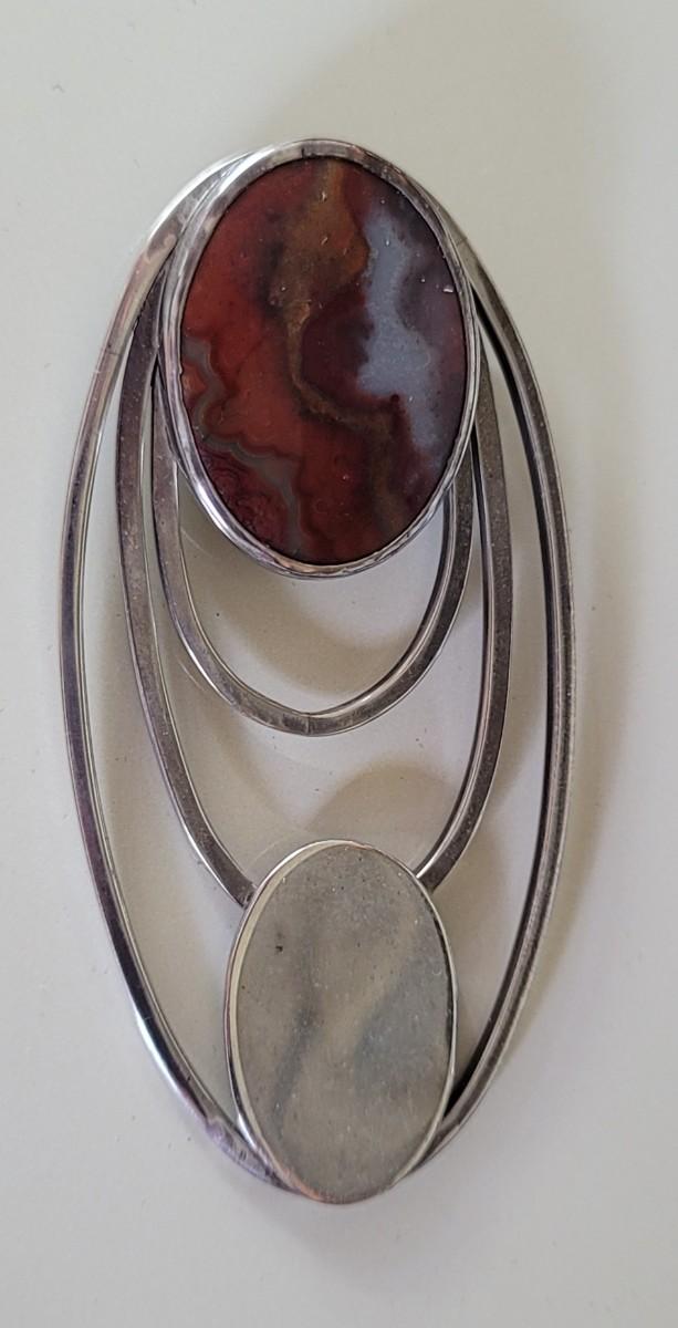 Lot J69: Sterling and Red Jasper 3" Oval Brooch