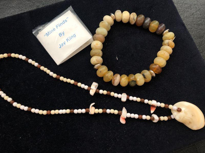 Beaded bracelet with sterling clasp, and a beaded necklace.