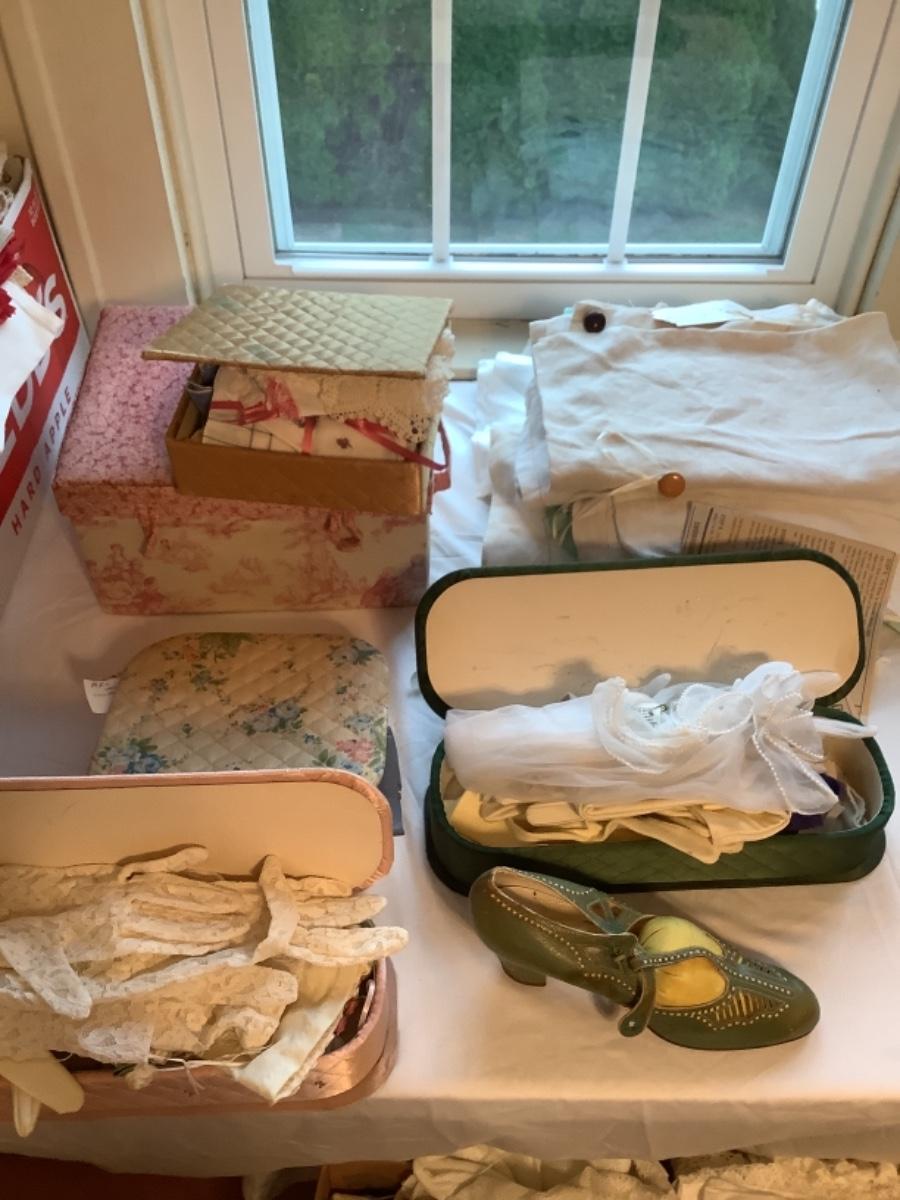 J779 3 boxes of Gloves and Vintage Handkerchiefs