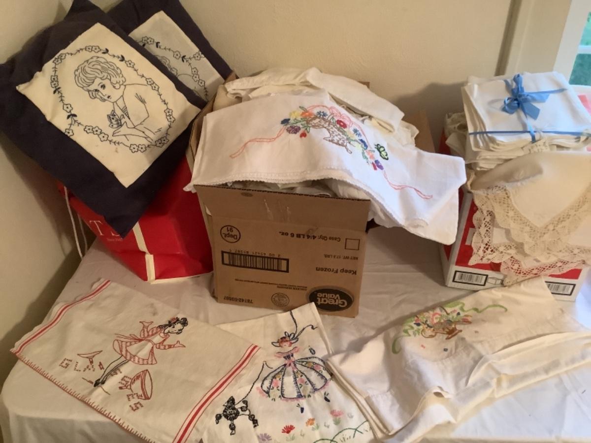 J782 Two Boxes of Linens / Panels & Tablecloths