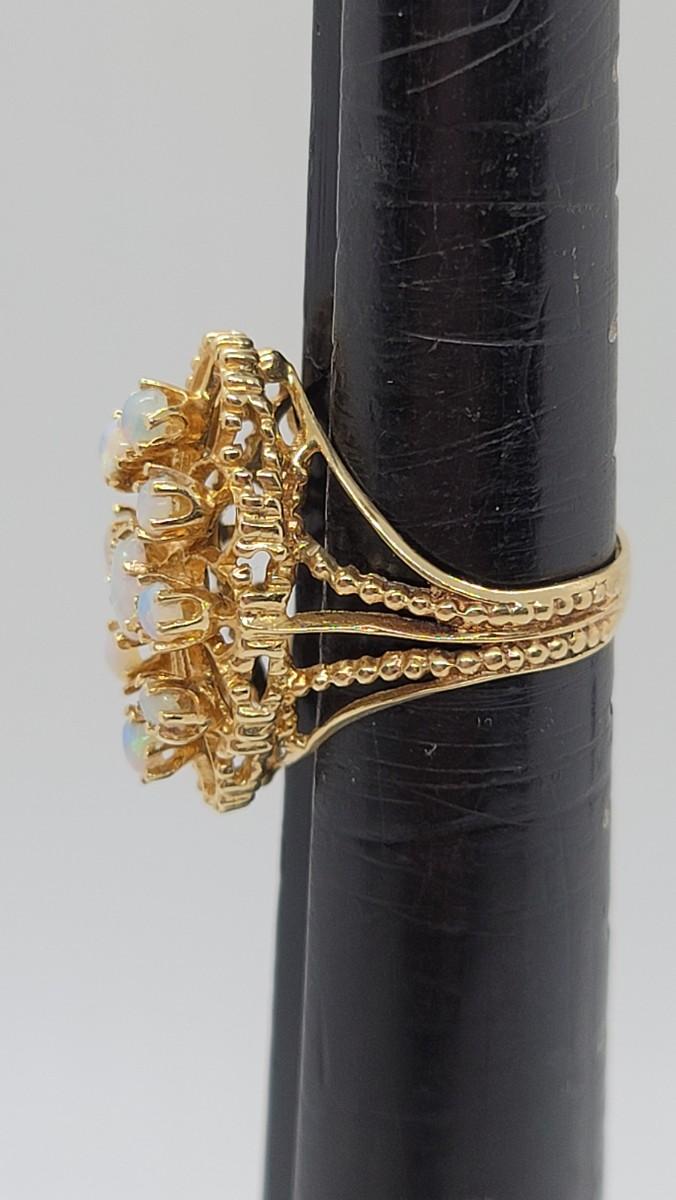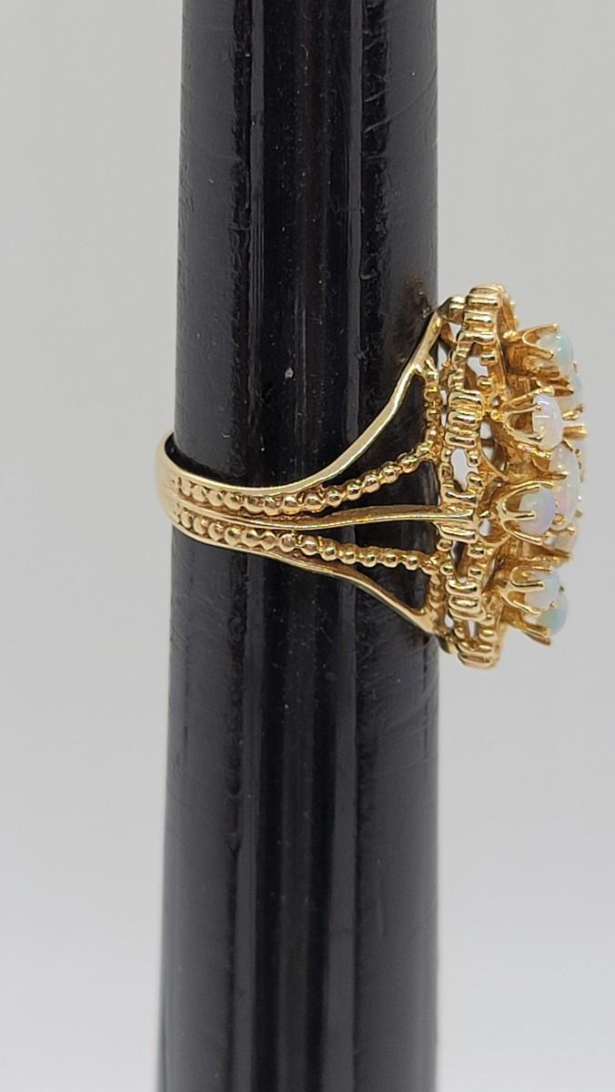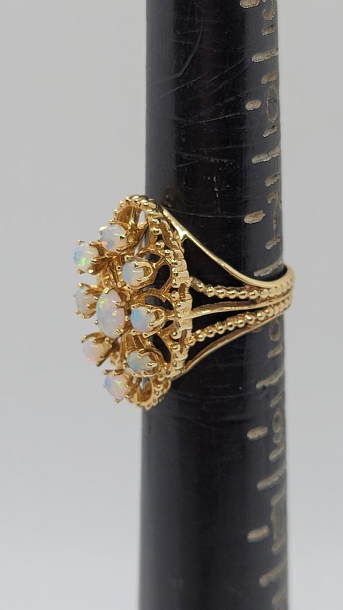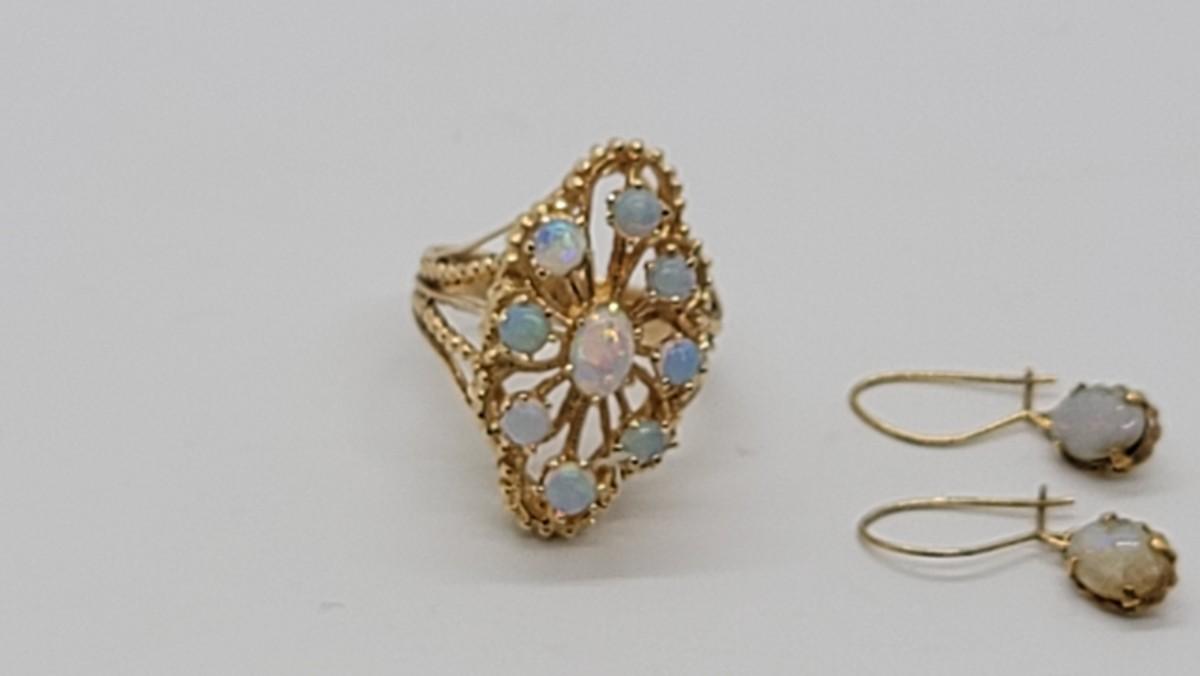 J83: 14k yellow gold Opal cluster ring sz. 8 and a pair of opal earrings