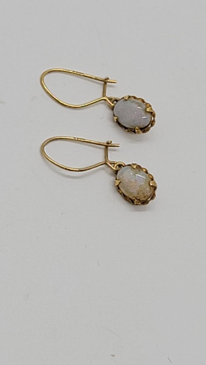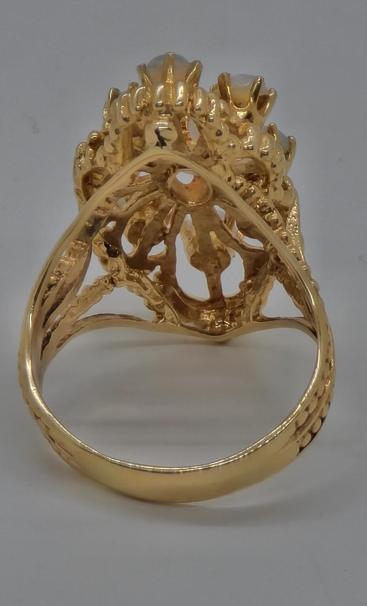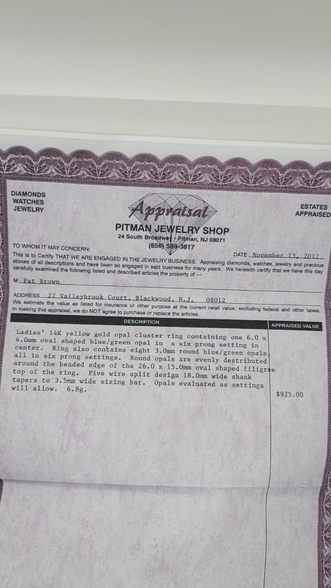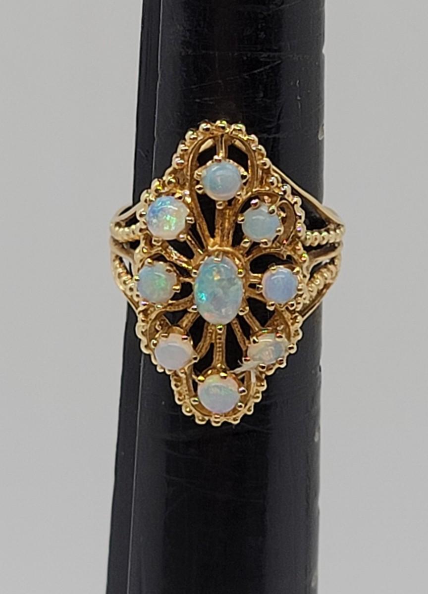 J83: 14k yellow gold Opal cluster ring sz. 8 and a pair of opal earrings