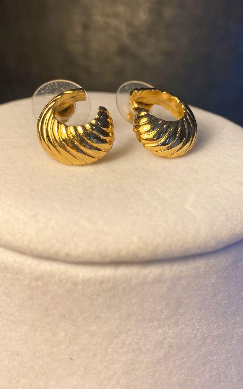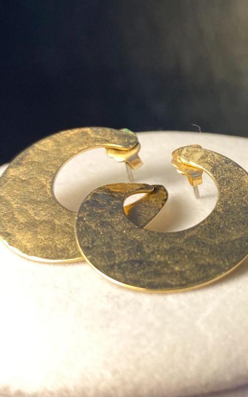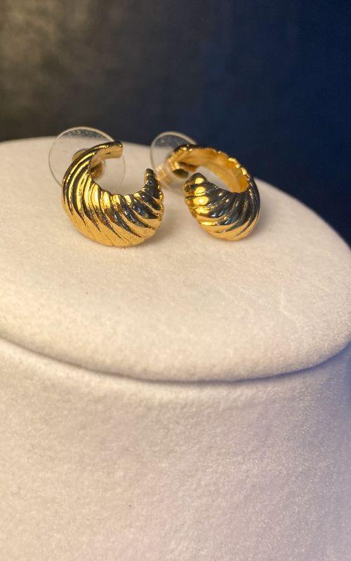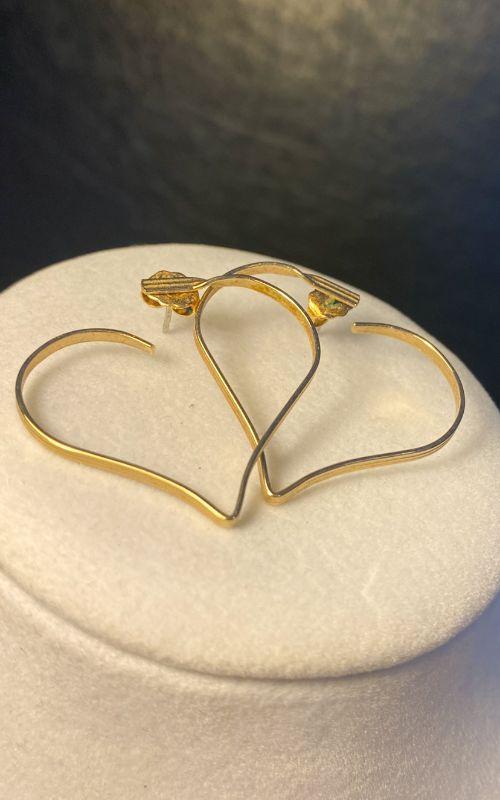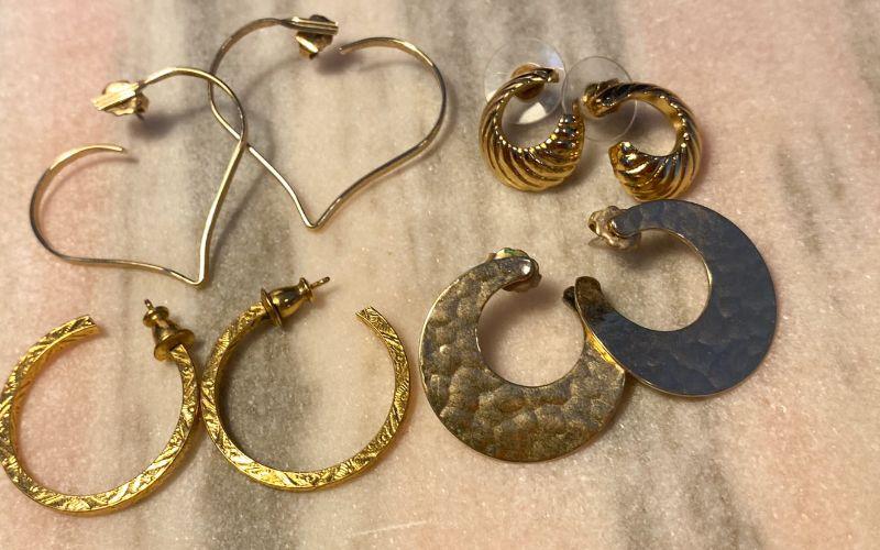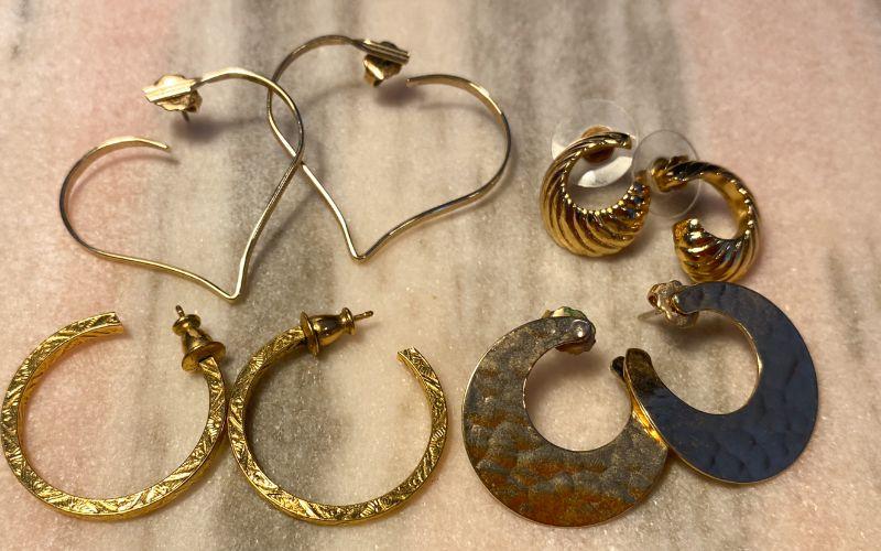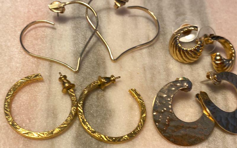 Gold tone hearts, hoops, hammered hoops, and shell style earrings.