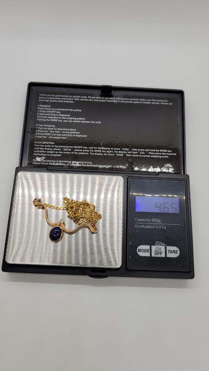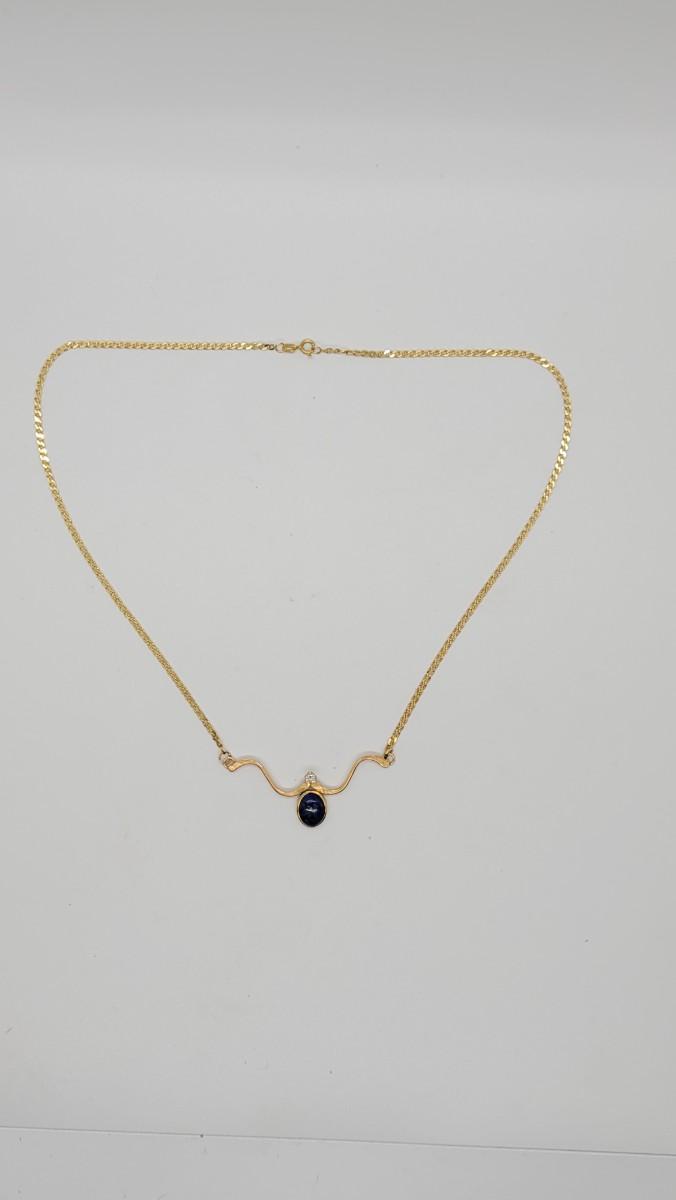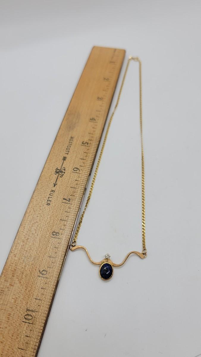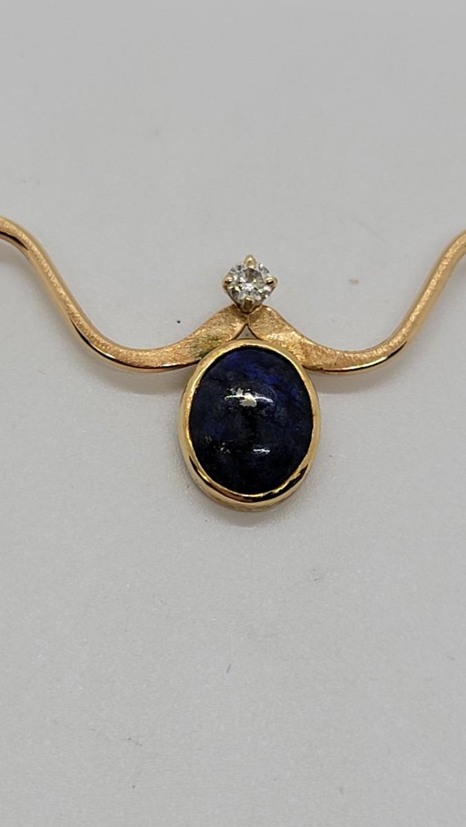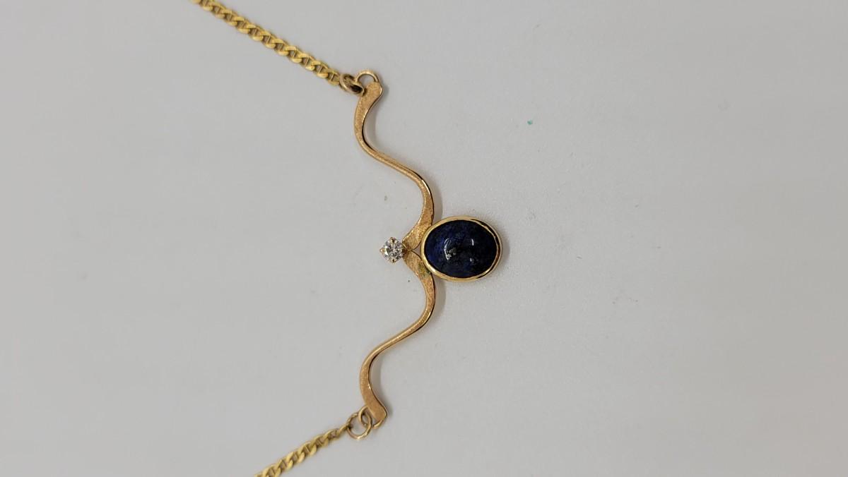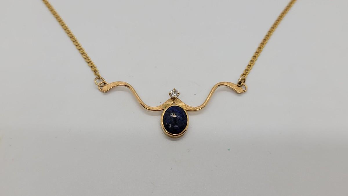 J94: 14K Italy Yellow Gold necklace with Lapis and Diamond