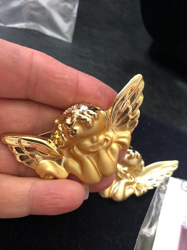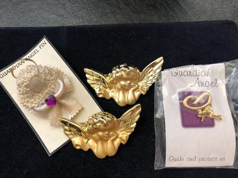 Guardian angel pins and cherub pins.