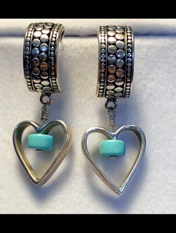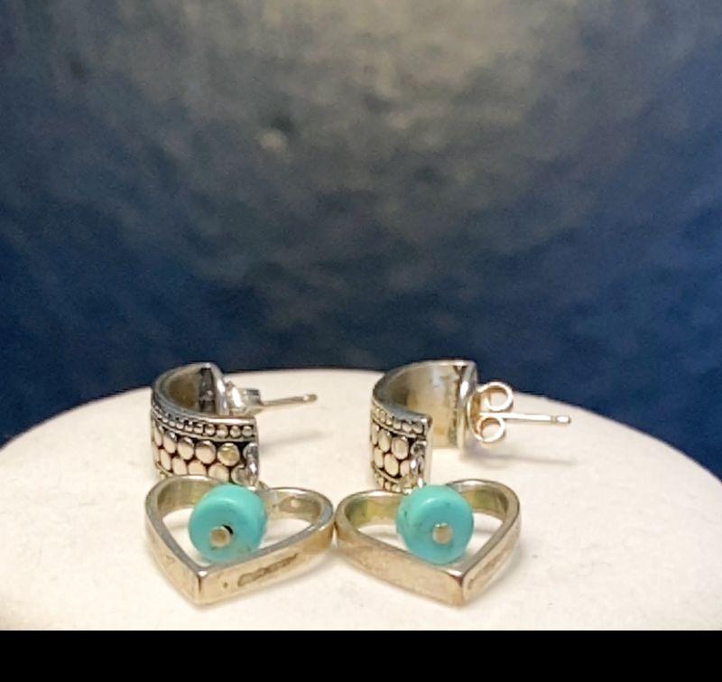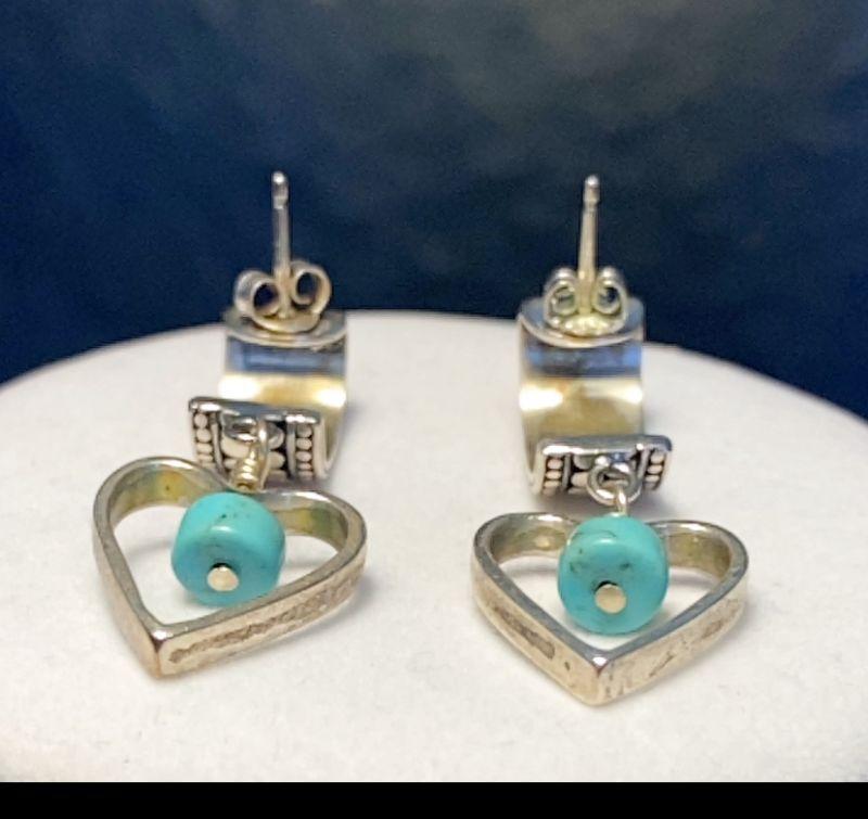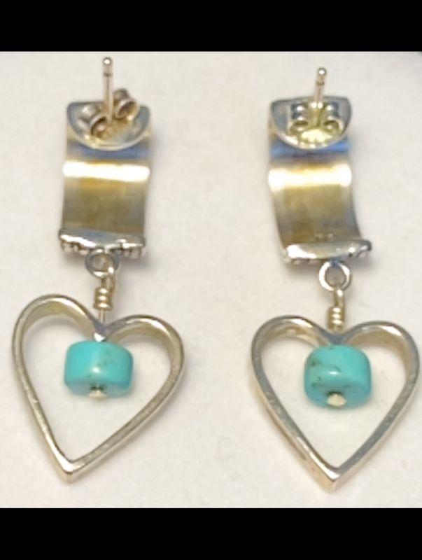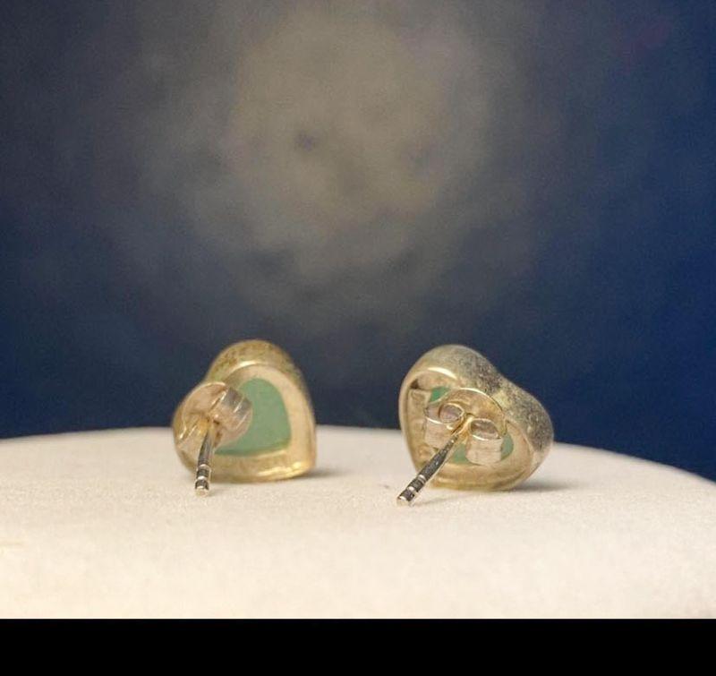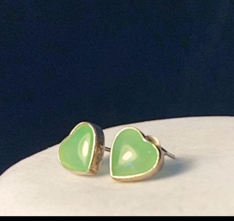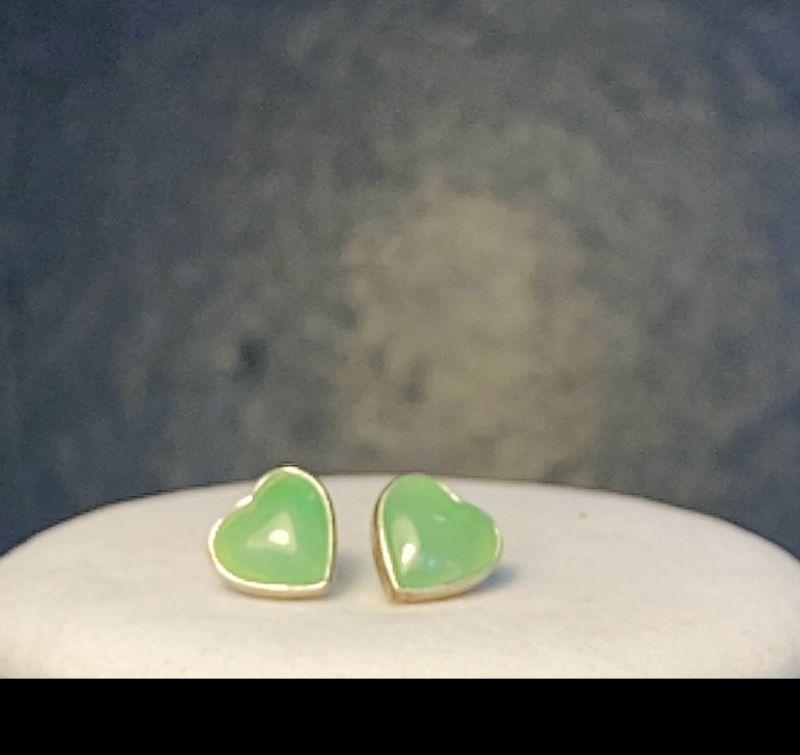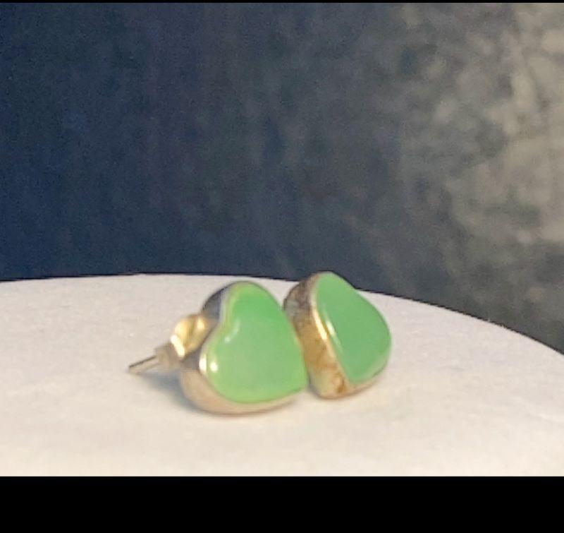 Green gem hearts in sterling silver, and cuff style 925 earring with hanging heart.