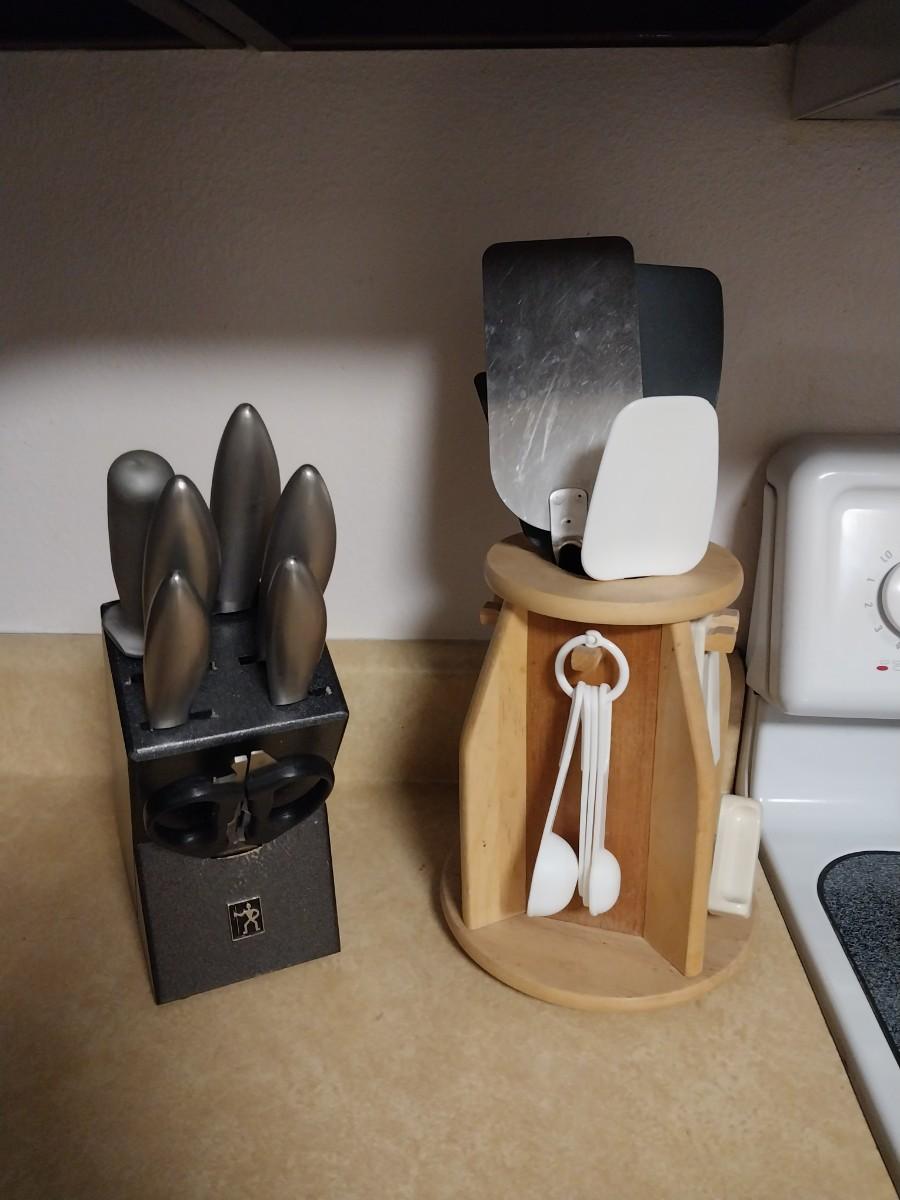 J.A. HENCKELS KNIFE SET AND ROTATING UTENSIL HOLDER