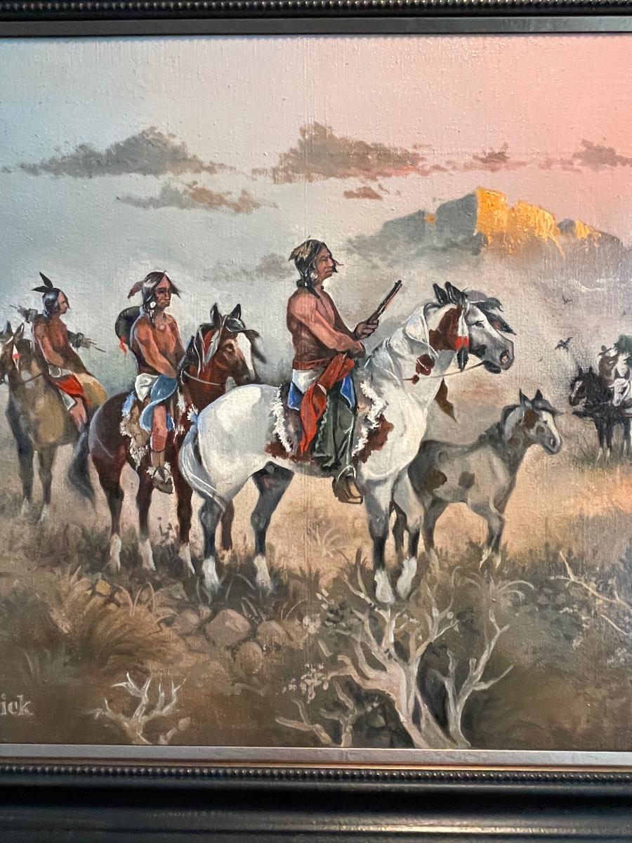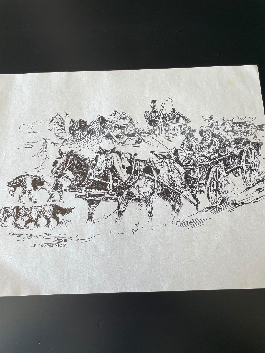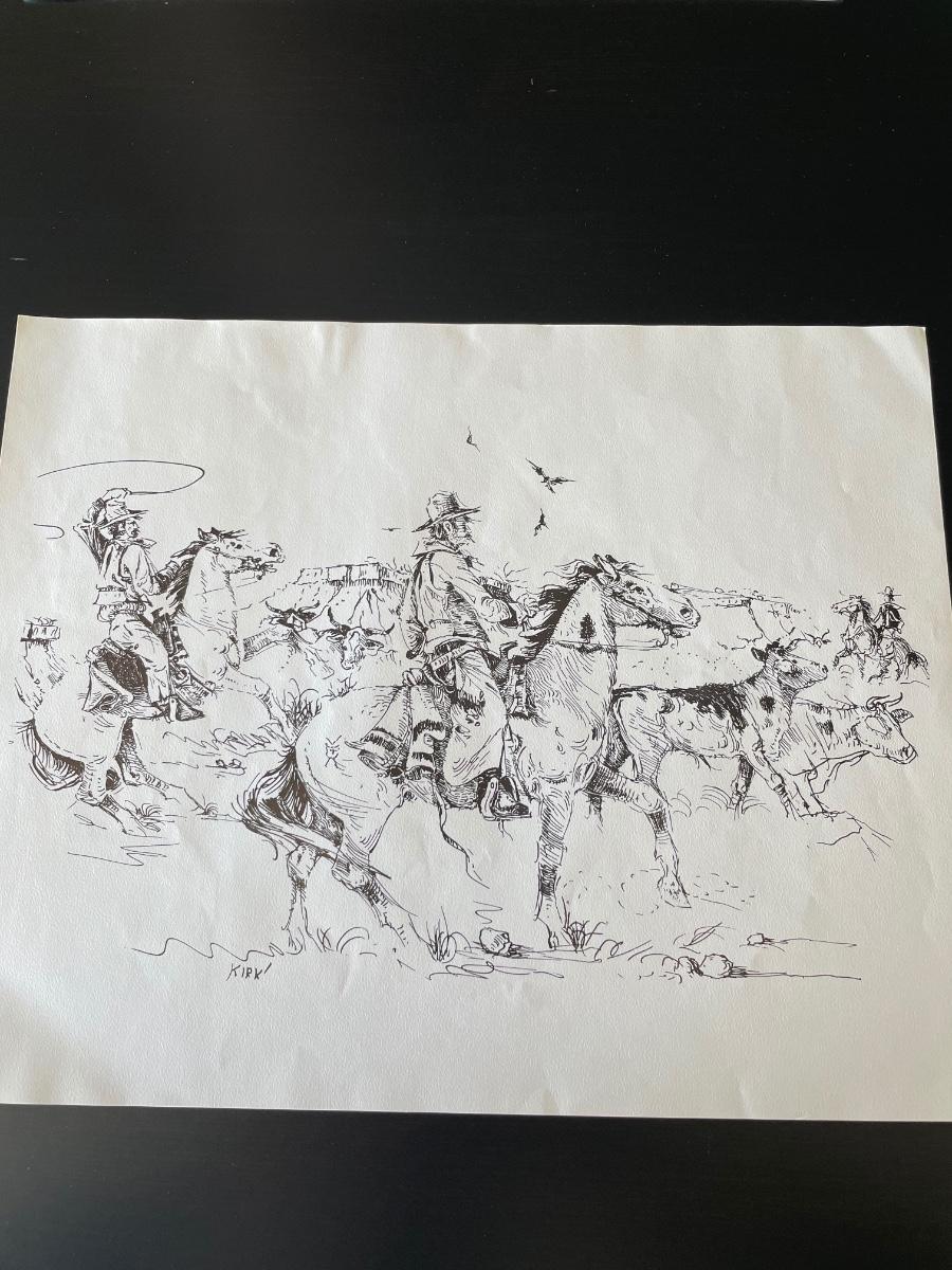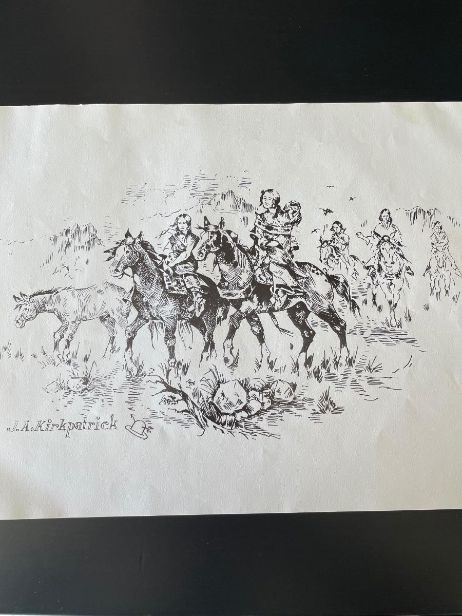 JA Kirkpatrick original oil painting from the 1970’s. Measures 40” by 28” in the frame. Excellent condition and professionally framed. Comes with 13 unique prints that measure 9 by 11.5” and artist information.