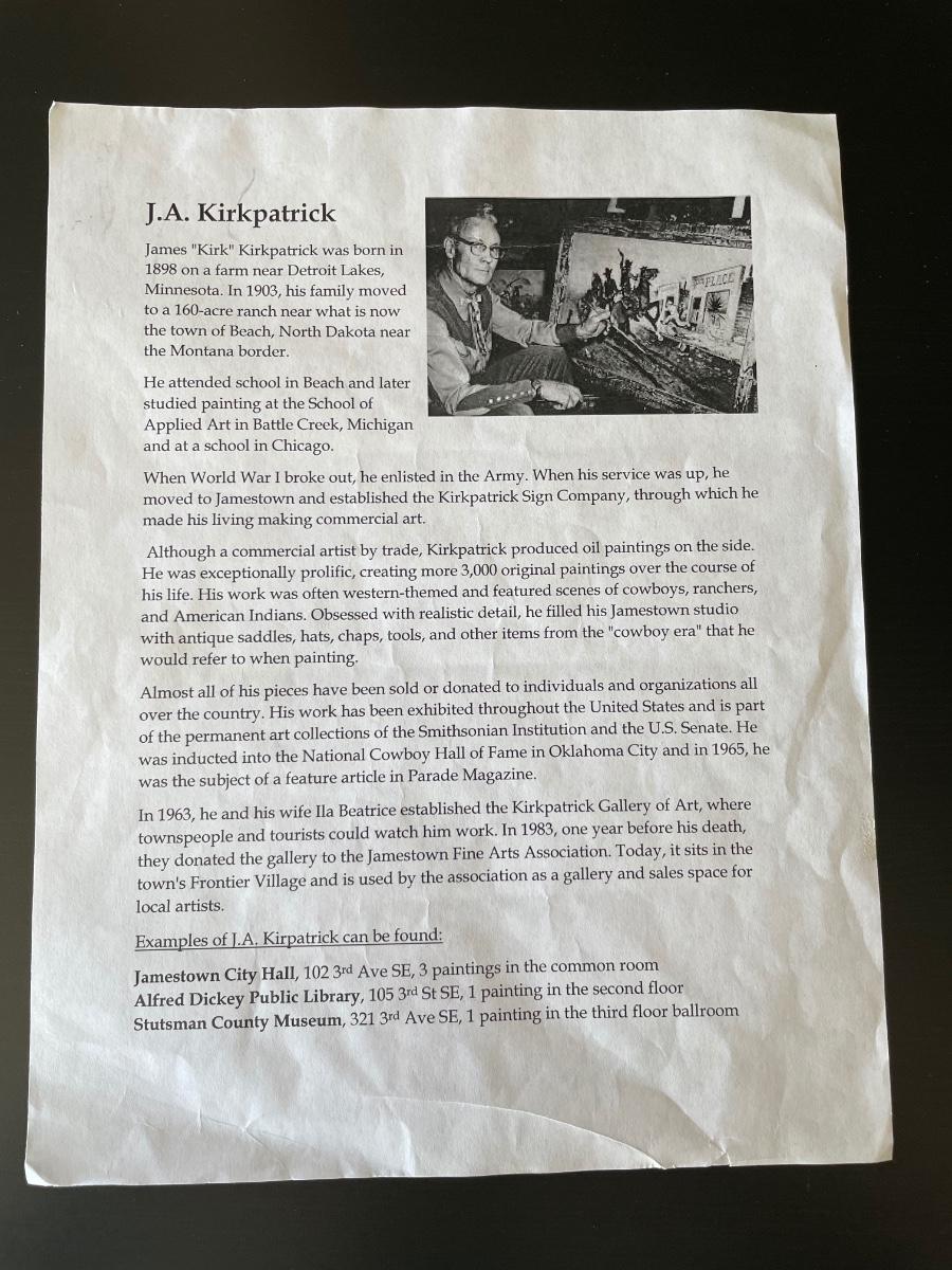 Kirkpatrick was born near Detroit Lakes MN in 1898 and also lived in Jamestown ND.