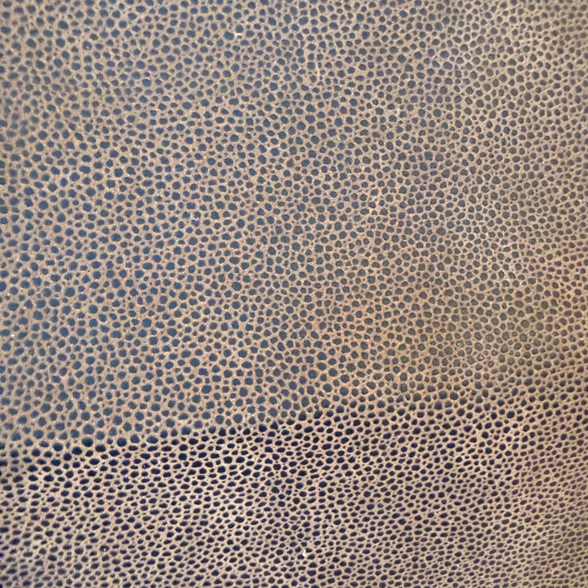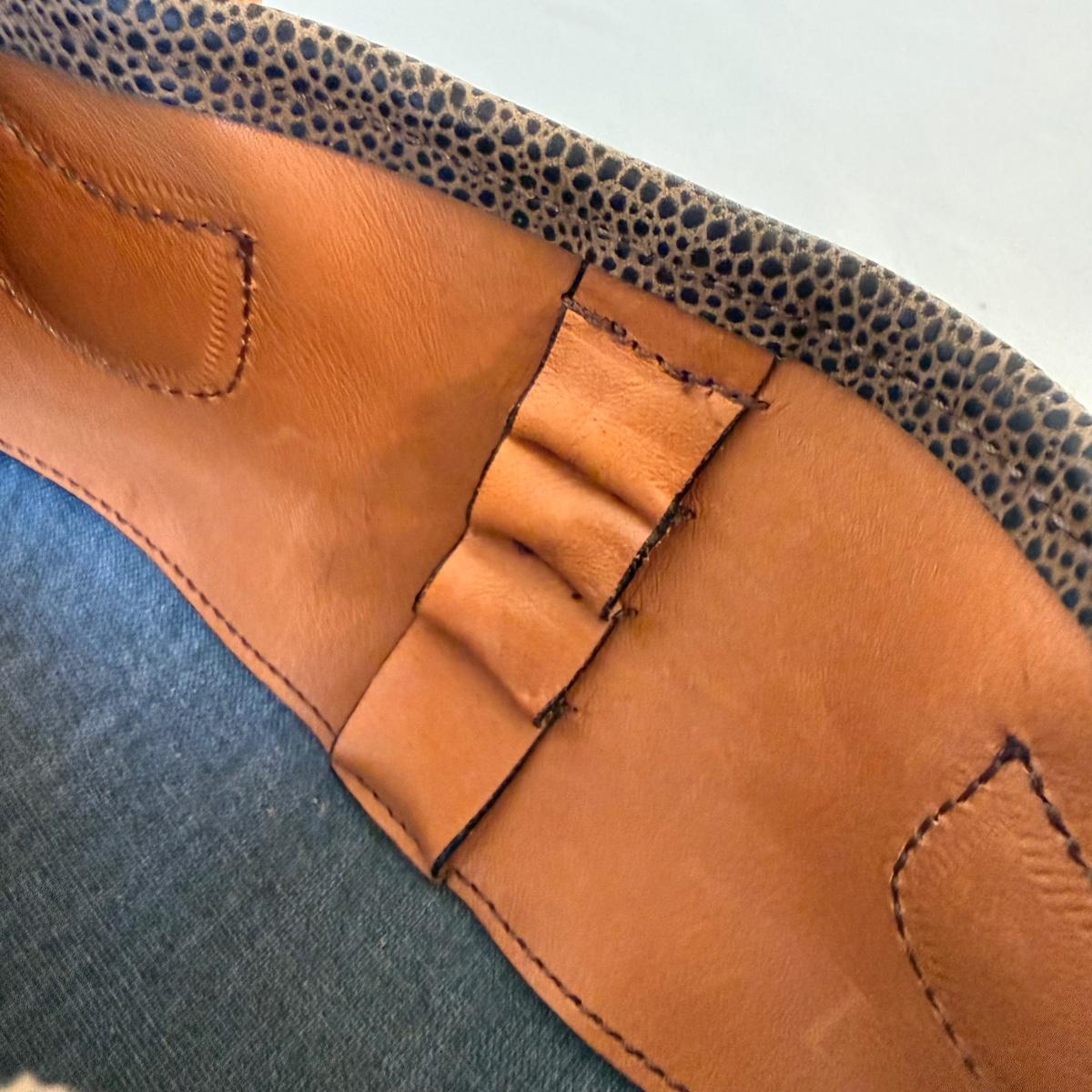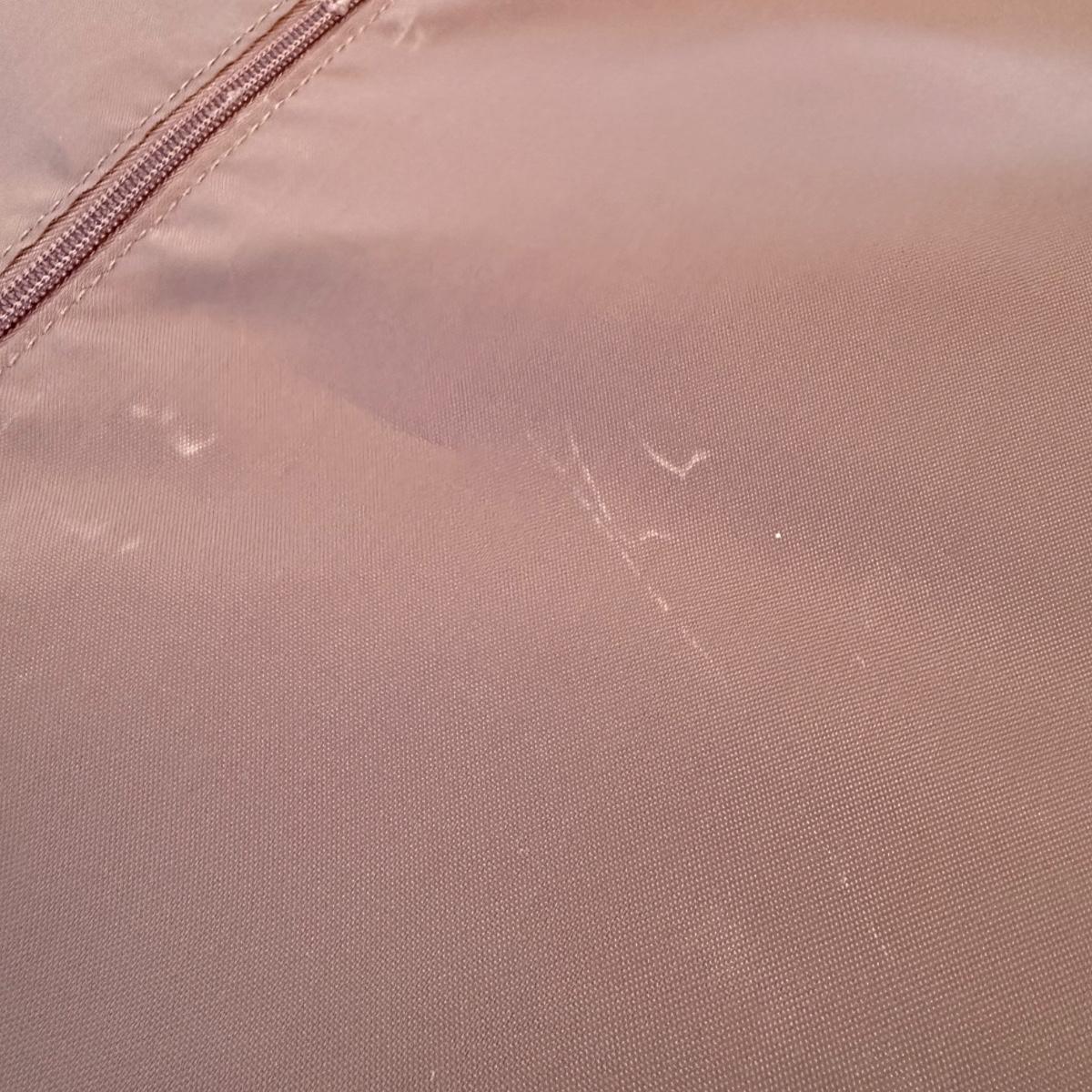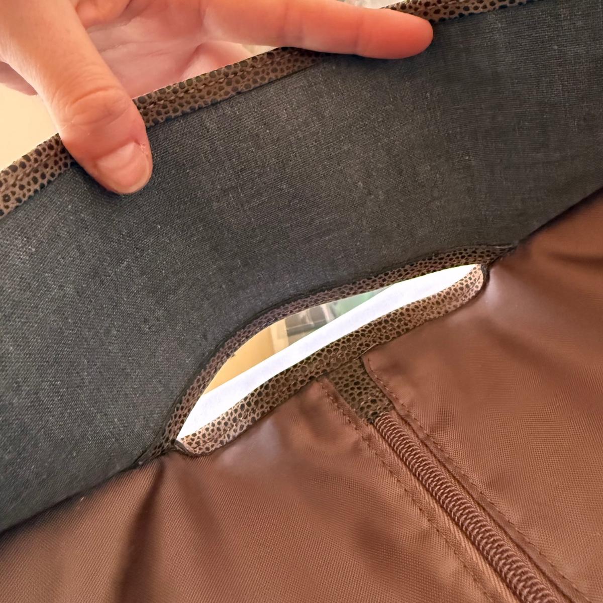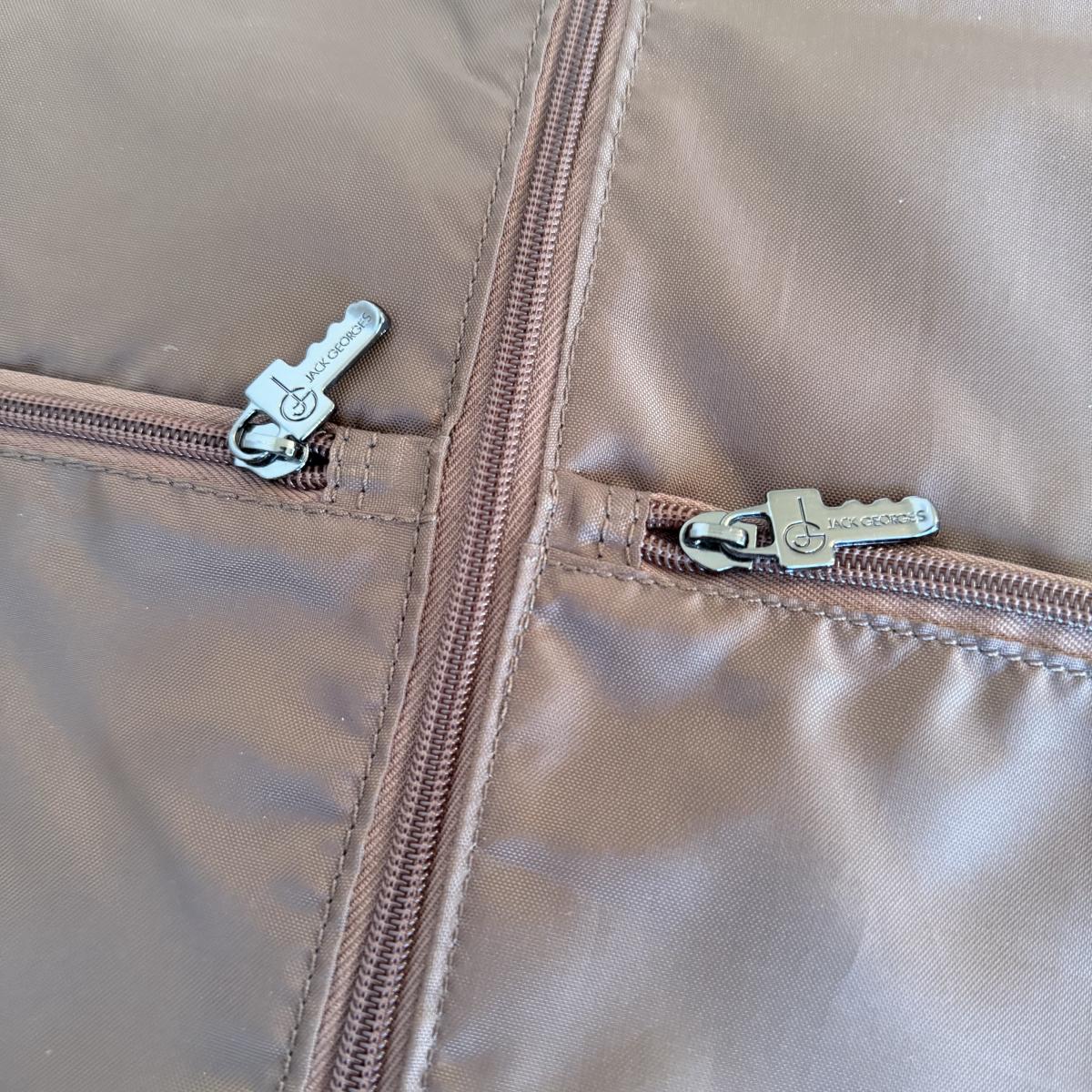 This is a Jack Georges brand garment cover bag, made from what appears to be shagreen-patterned leather. It has one large zippered pocket on the exterior, with an interior compartment for your garment plus two smaller zippered pockets. Unfolded the item measures 23” x 48.5”, not including the handle. A few areas of discoloration are shown in the photos.
