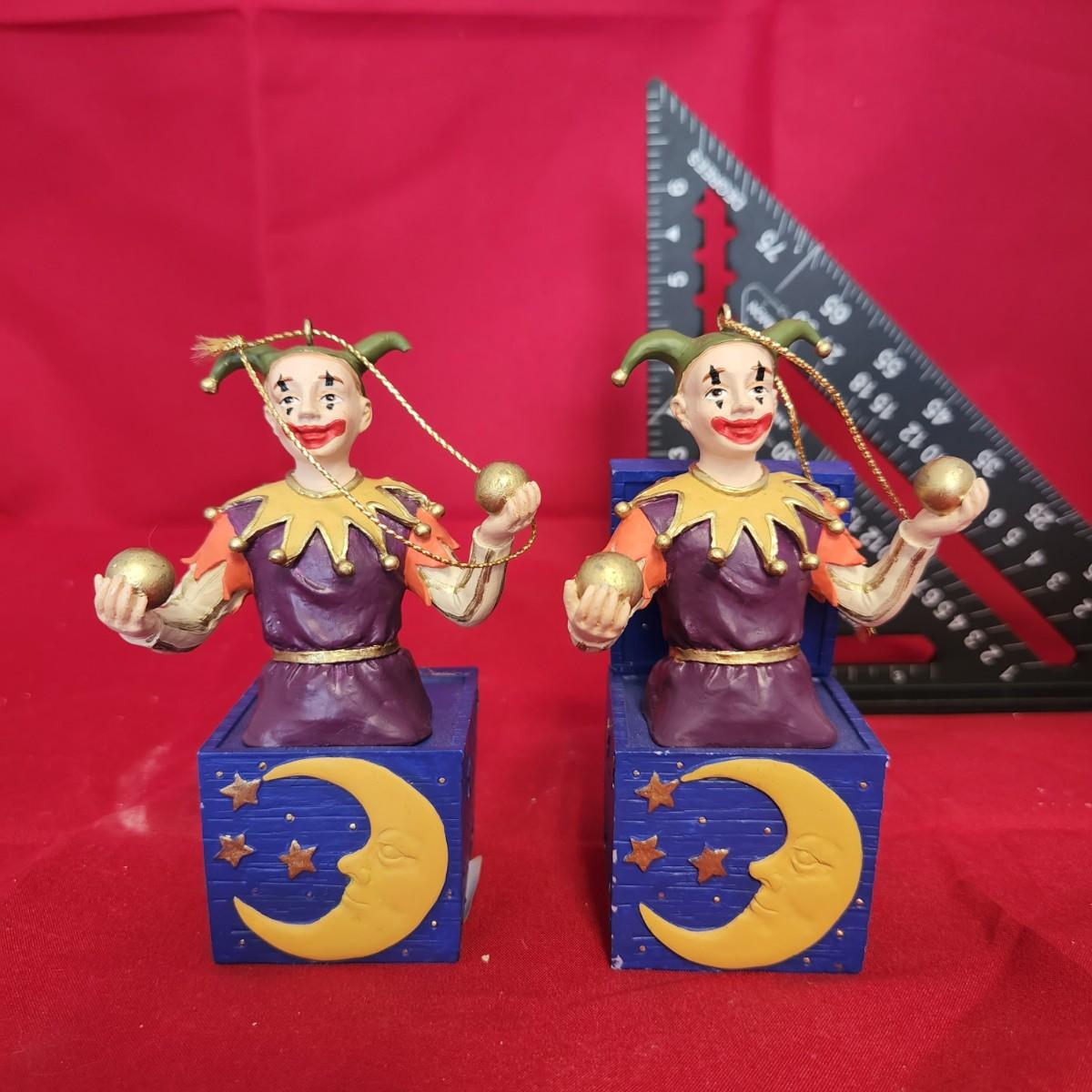 Set of jack in the box ornaments.