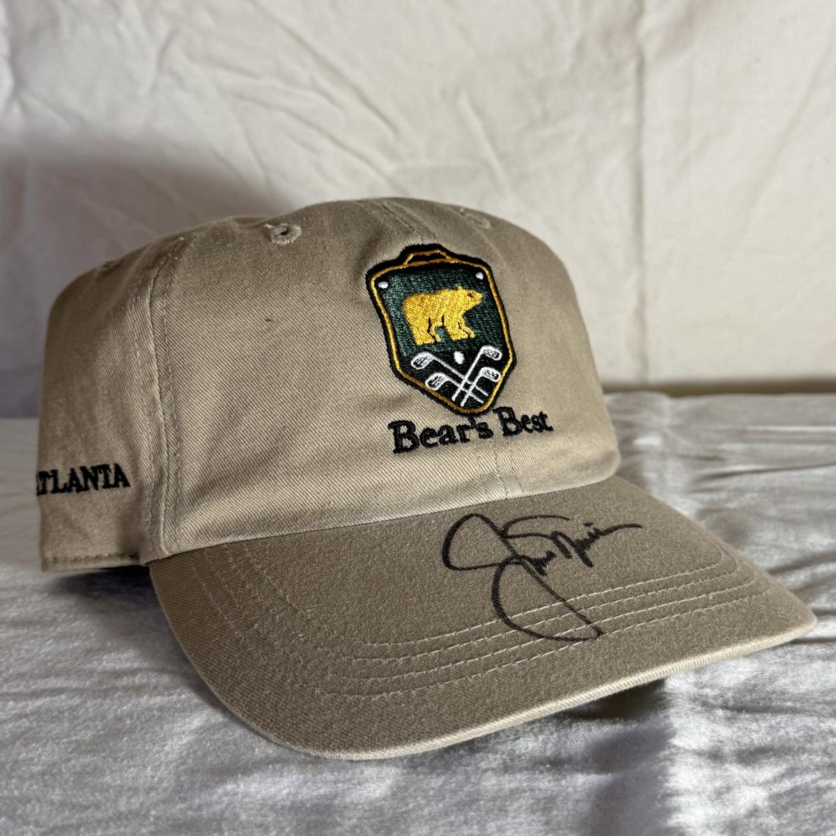 Lot includes one hat autographed by Jack Nicklaus. The hat has a Bear’s Best patch on the front and Atlanta embroidered on the side. The hat appears to be adjustable, with no size listed. Shipping available.