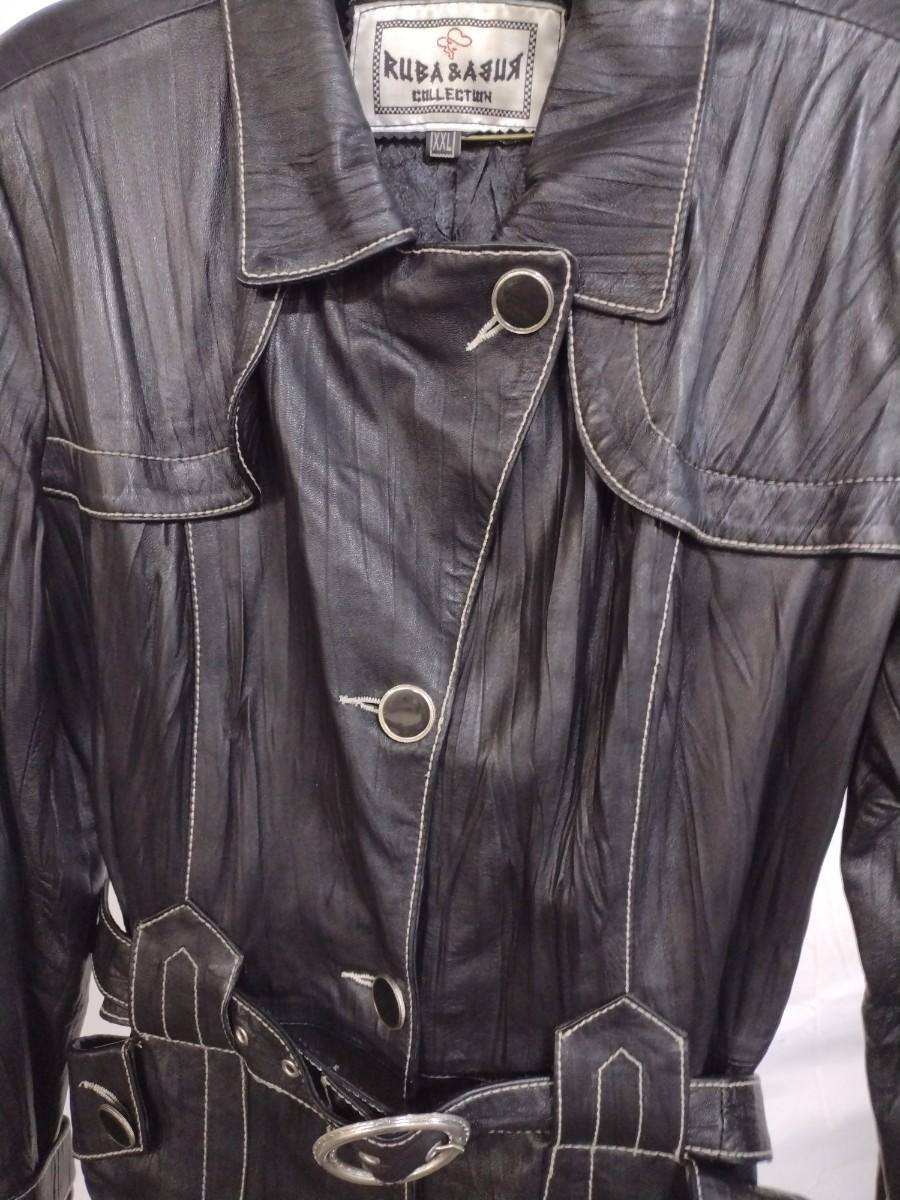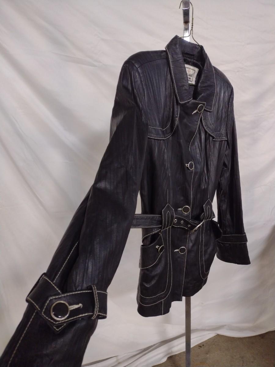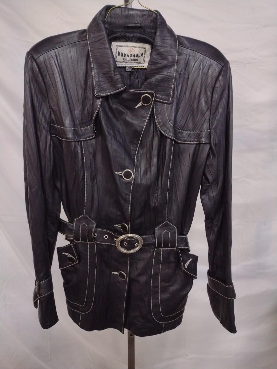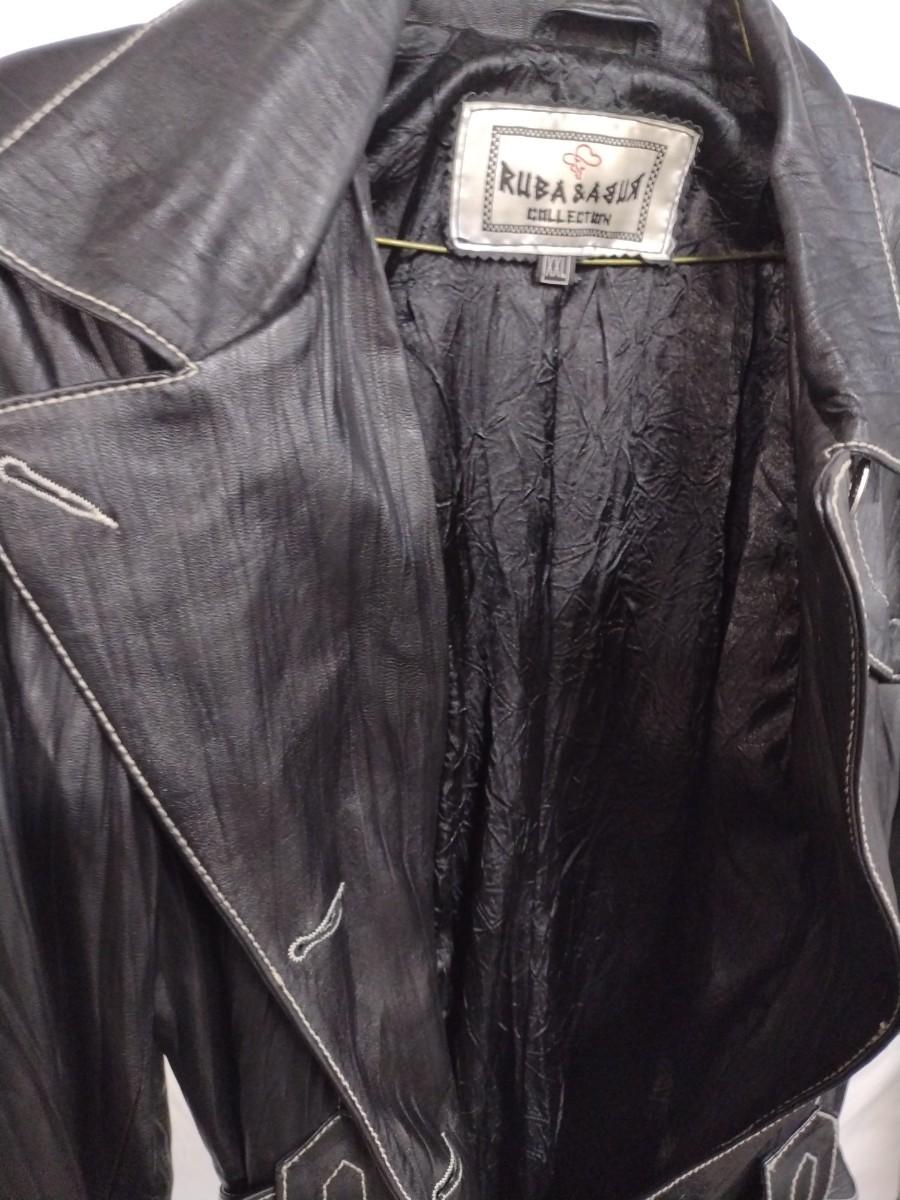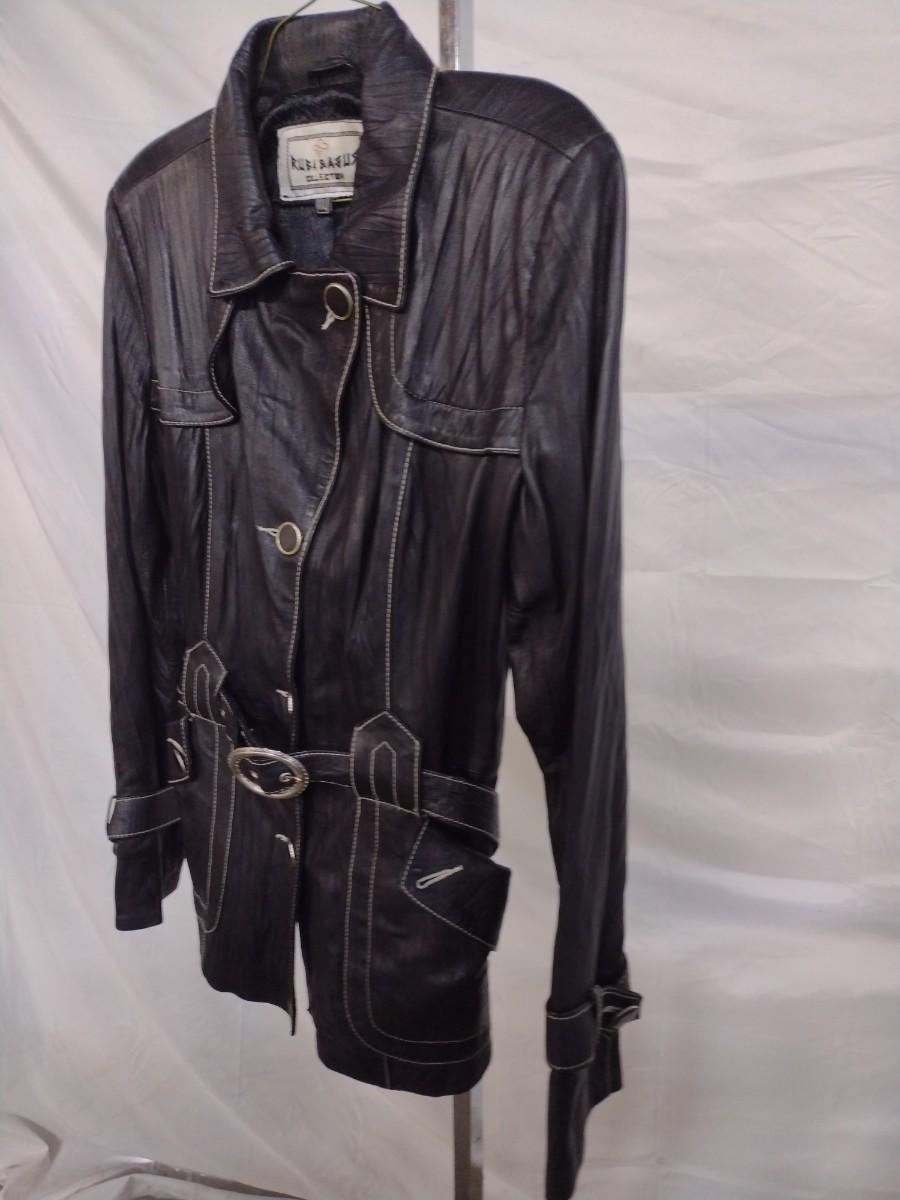 Ruba Ruba Collection Custom Leather Full Button Lady's Coat right sleeve has button missing.