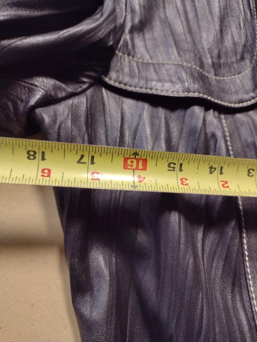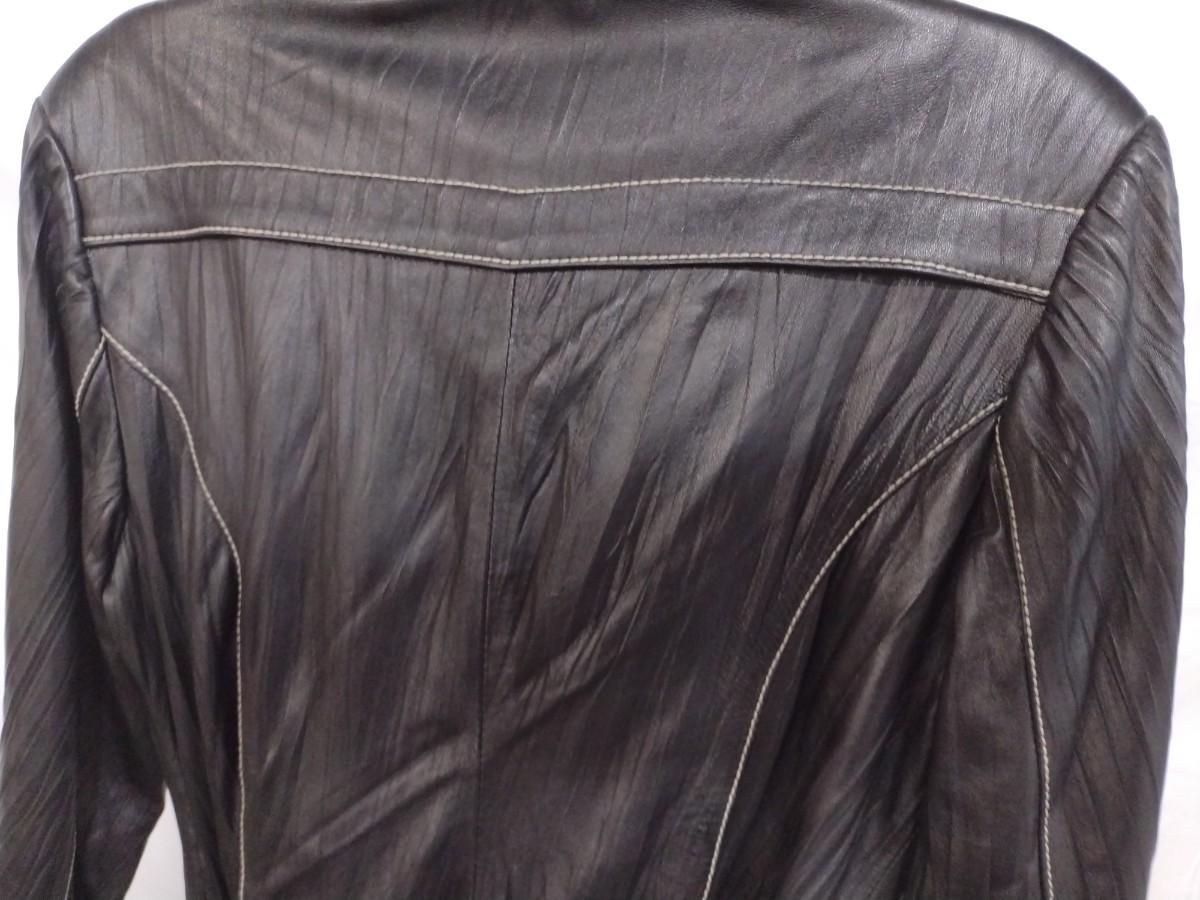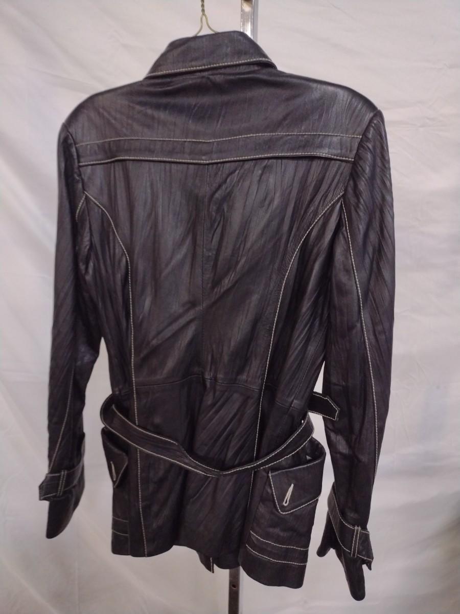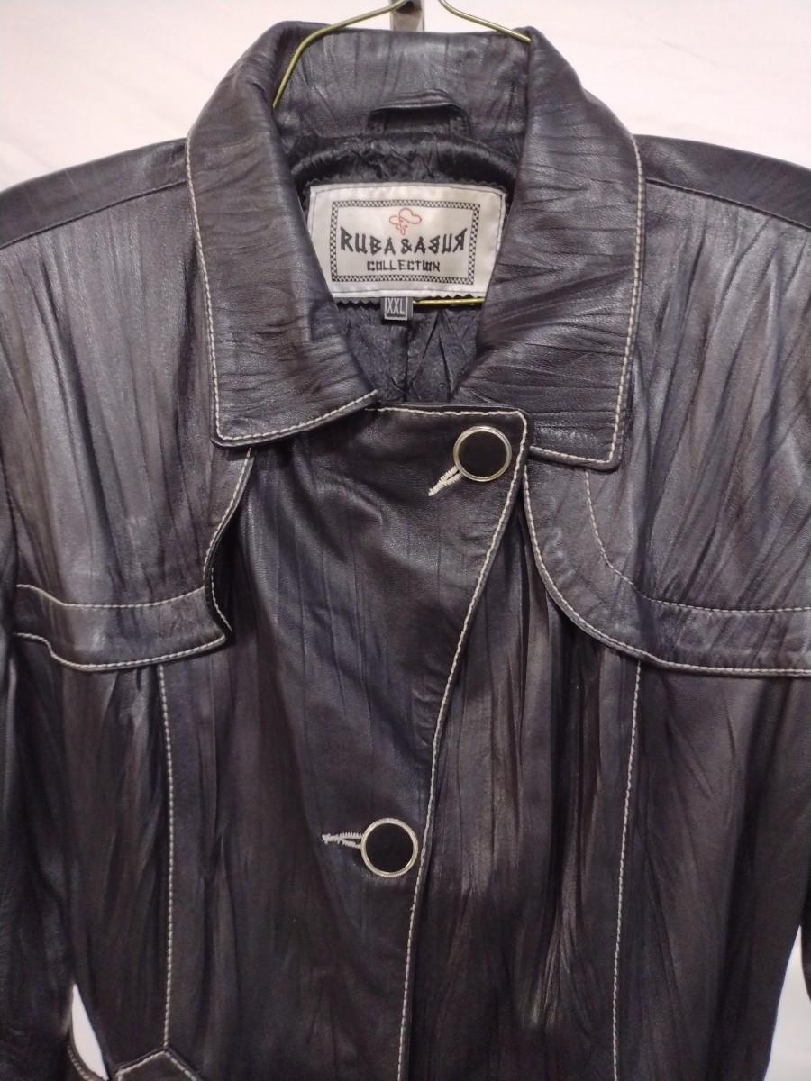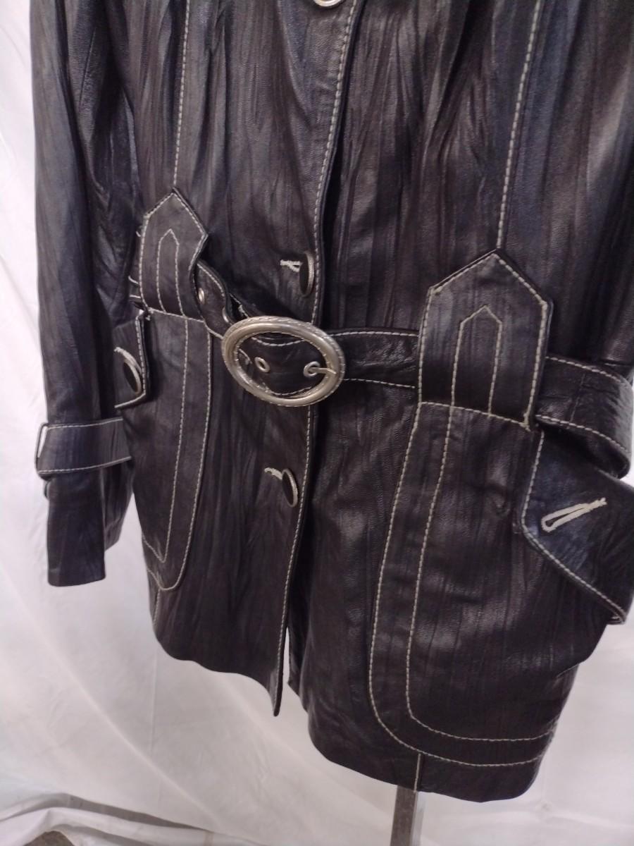 Ruba Ruba Collection Custom Leather Full Button Lady's Coat right sleeve has button missing.
