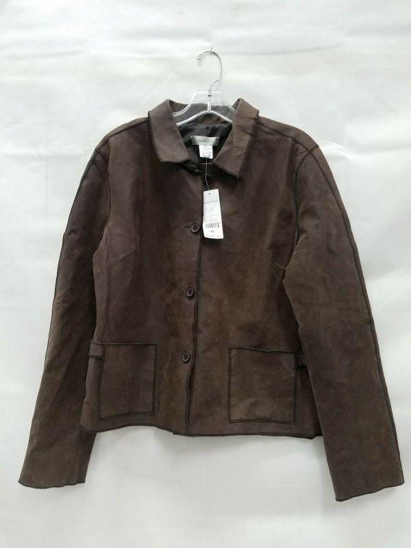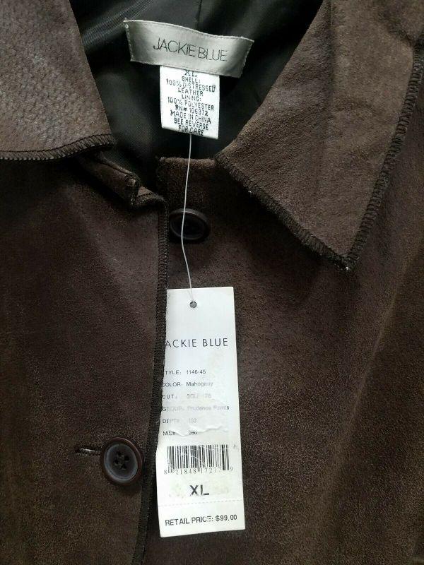 Jackie Blue Mahogany Brown Leather Jacket NWT Button-Up, Lined