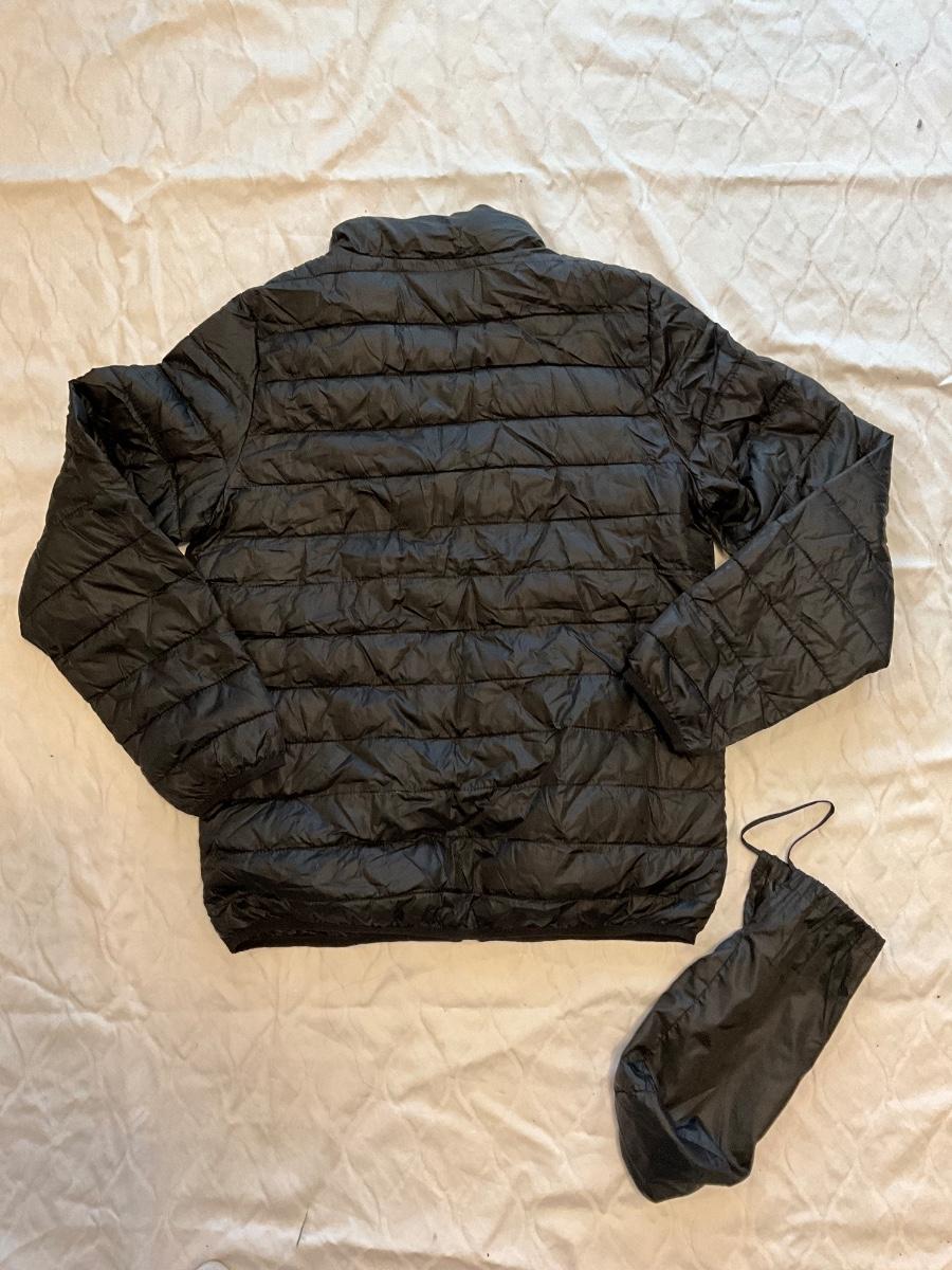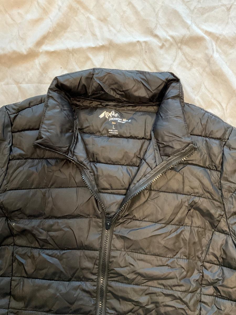NEW Jackson Hole puffer jacket in black, Large. Folds down into a matching bag.