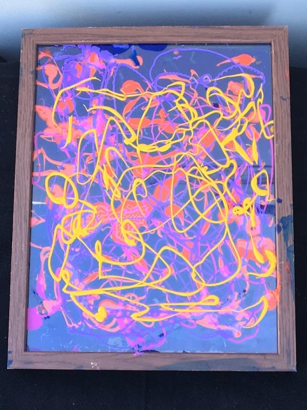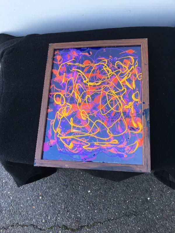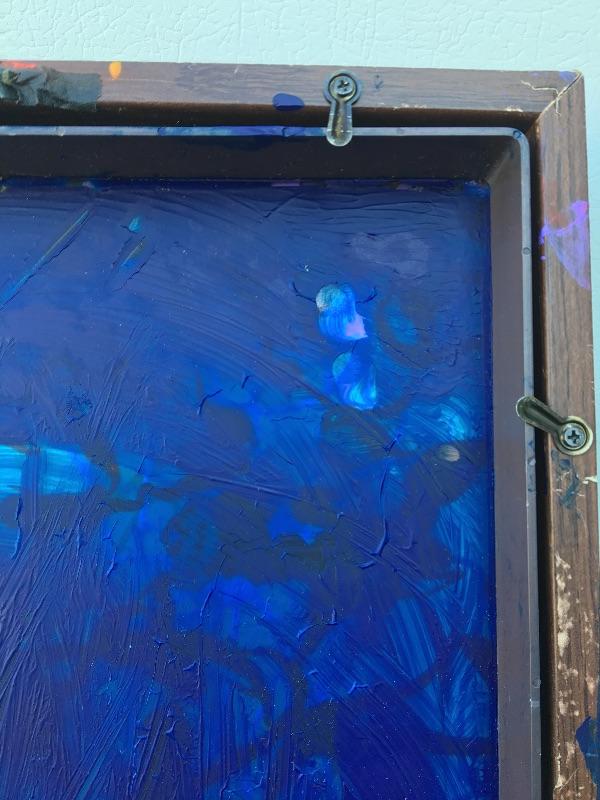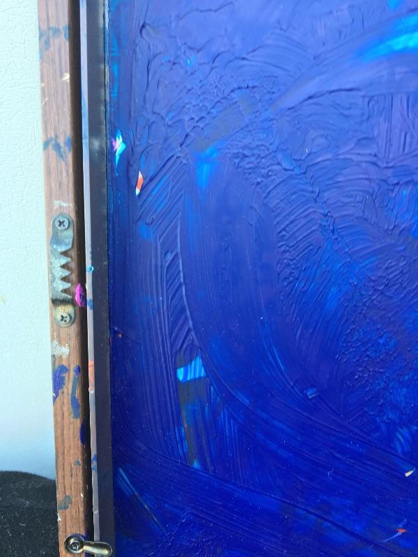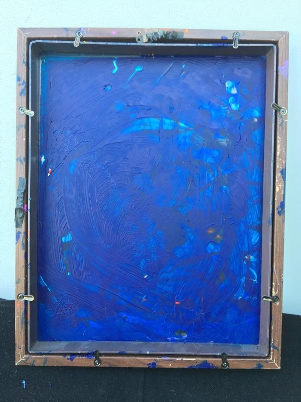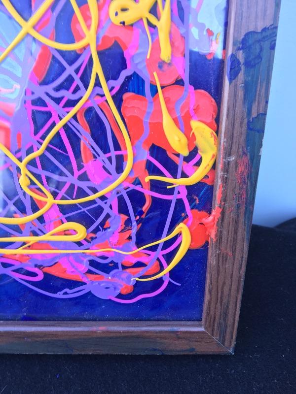 JACKSON POLLOCK Style Original 11 x 14 Oil on Glass with cobalt background