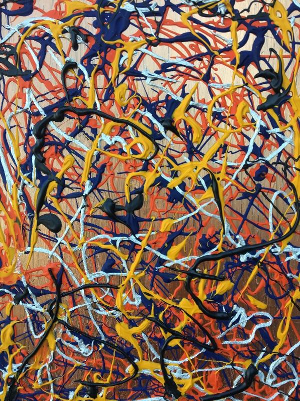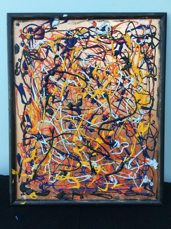 JACKSON POLLOCK Style Original 13 x 16 Oil on Glass with copper background
